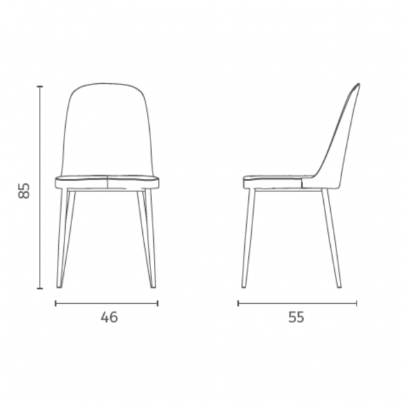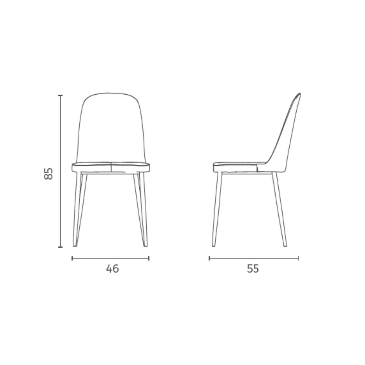 La struttura cambia in base al materiale scelto. Nelle versioni in tessuto e in soft touch, le gambe sono realizzate in metallo verniciato, resistenti e curate nei dettagli, perfette per un uso quotidiano e intensivo. Nella variante in polipropilene, invece, la struttura è interamente in tinta: seduta e gambe sono dello stesso materiale e colore, per un effetto monoblocco pulito e moderno.