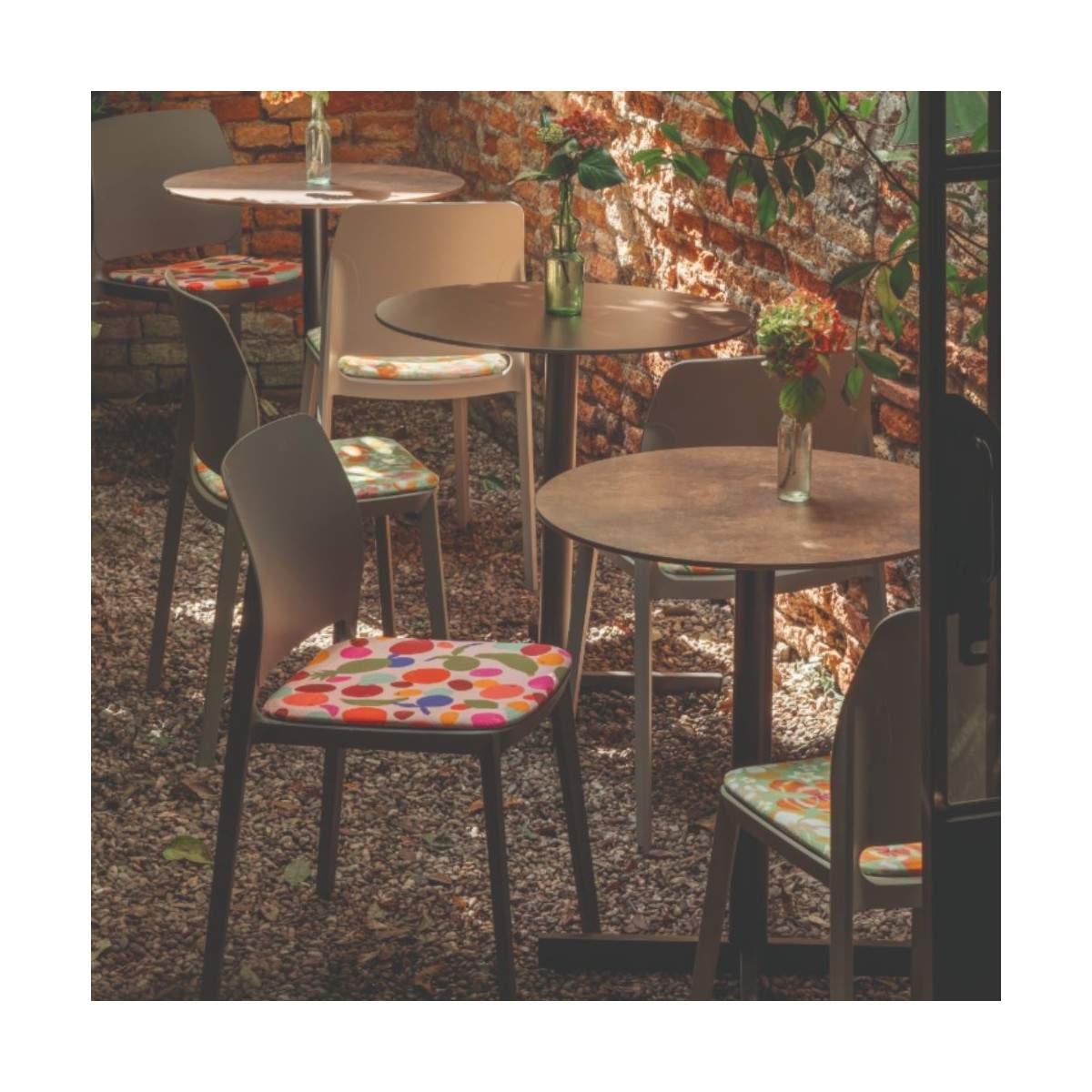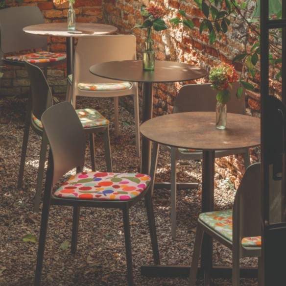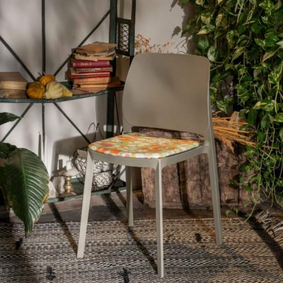 La struttura in polipropilene garantisce solidità, leggerezza e facilità di manutenzione, mentre i cuscini decorati con ricami floreali o stampe fruttate aggiungono un tocco di colore e personalità, rendendo la seduta elegante e confortevole.