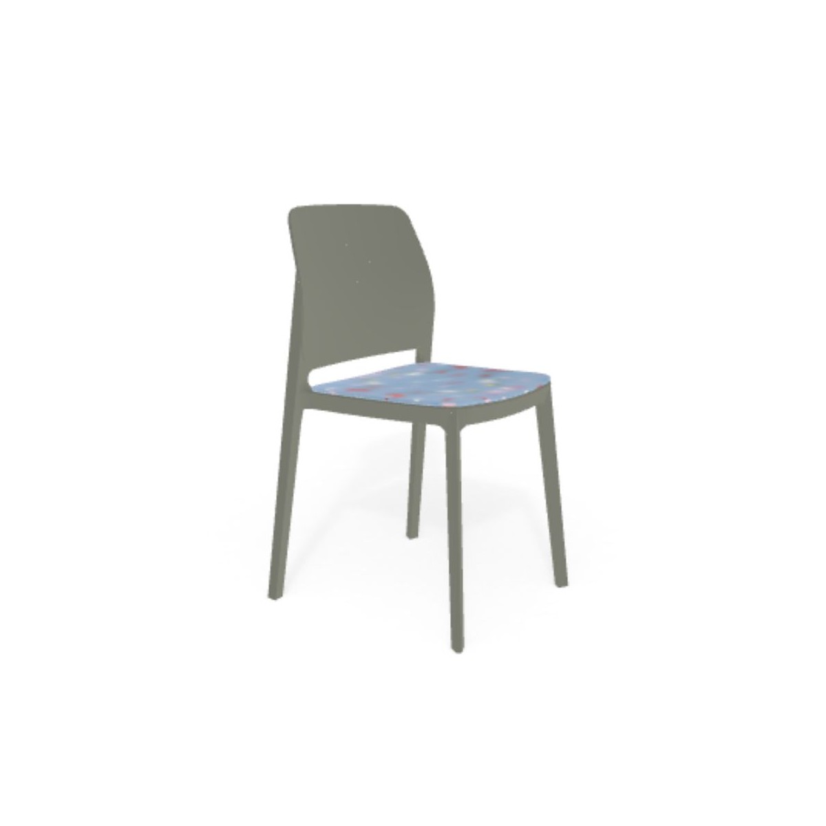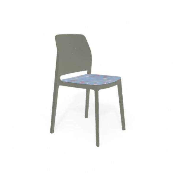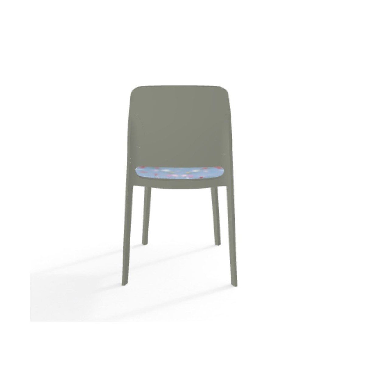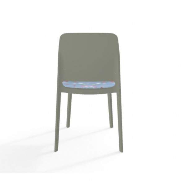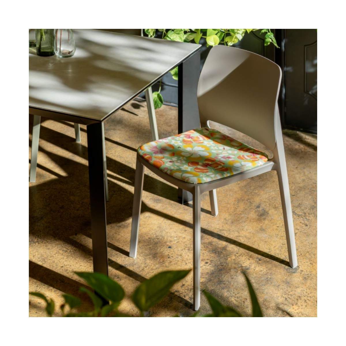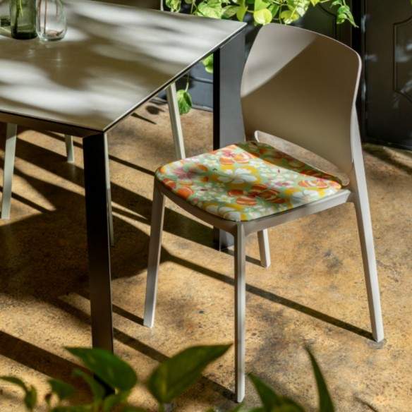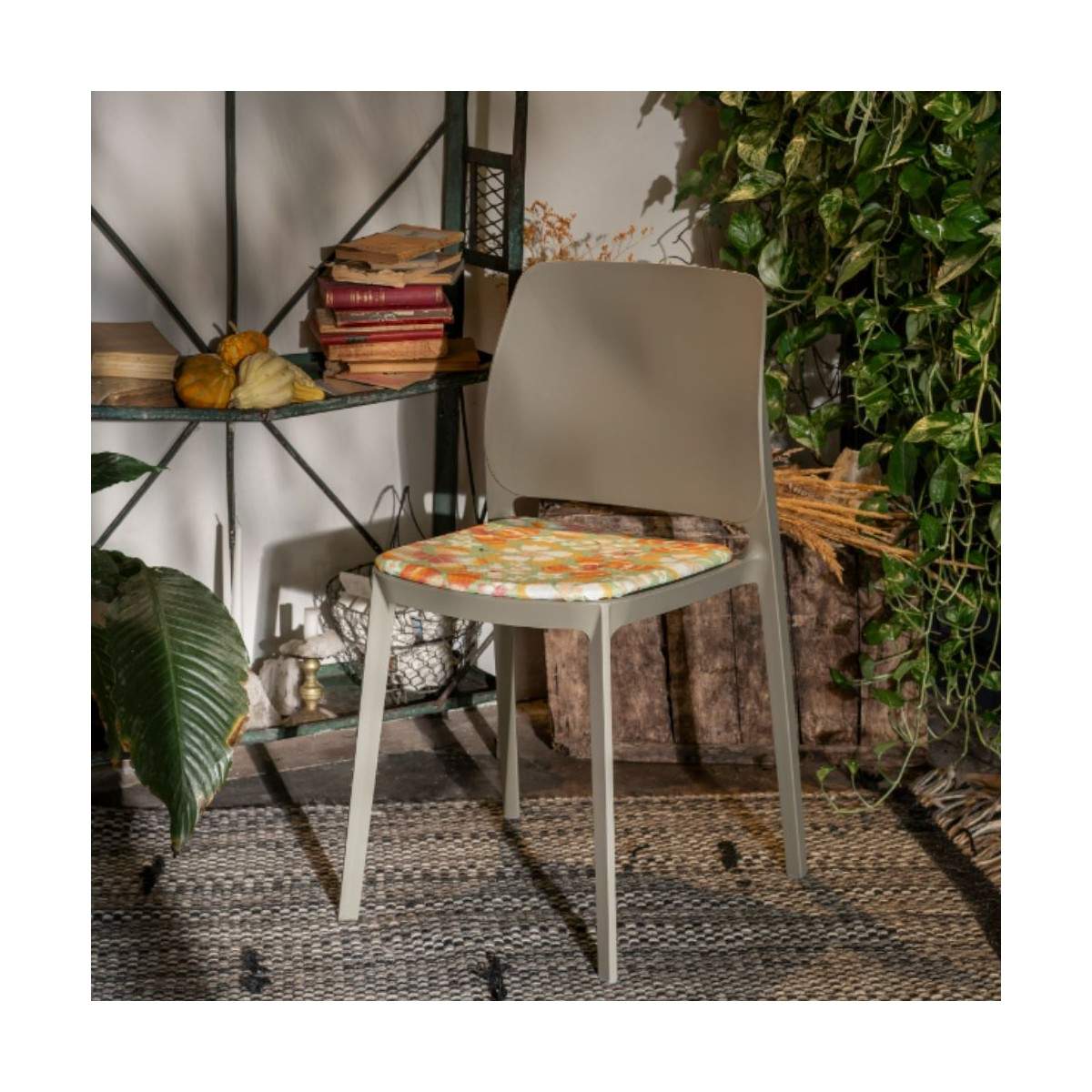 Sedia TIPA IKA JANE in polipropilene con la seduta dei cuscini decorati con ricami floreali e stampe fruttate