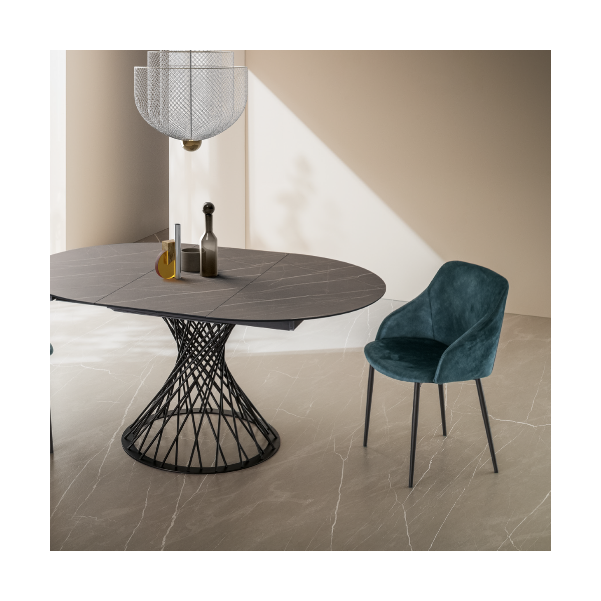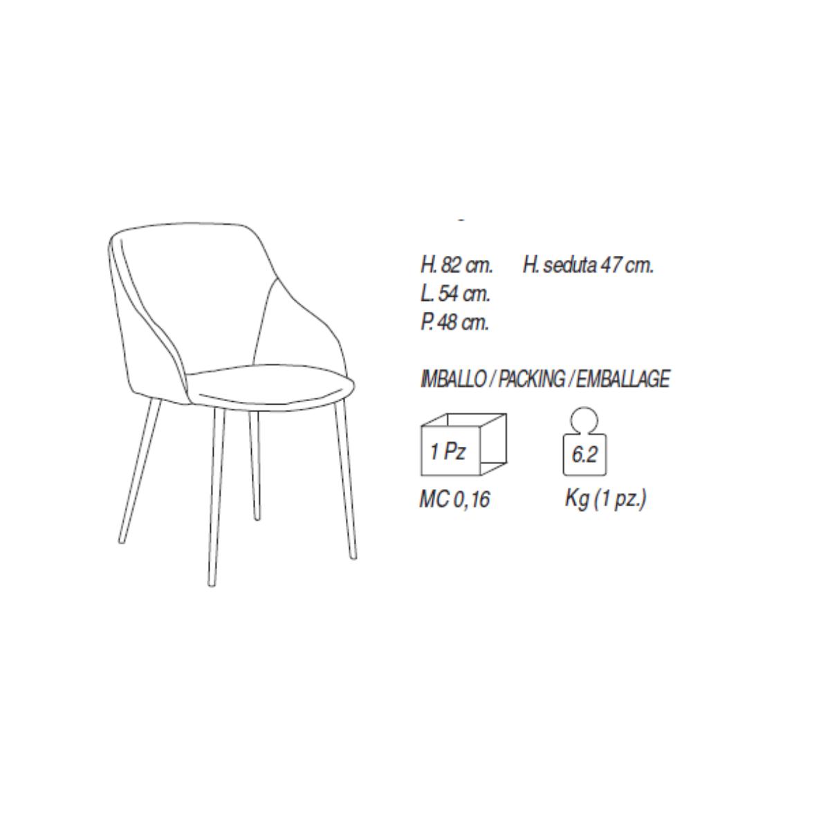 Le gambe in metallo verniciato, disponibili nelle eleganti tonalità nero, bronzo o moka, donano alla sedia un look solido e raffinato, perfetto per ambienti moderni ma capace di adattarsi anche a contesti più classici. La seduta è proposta in una vasta gamma di rivestimenti: puoi scegliere tra microfibra, velluto o ecopelle in diverse colorazioni, per personalizzare facilmente il tuo spazio e abbinarla al tavolo o al resto dell’arredo.
