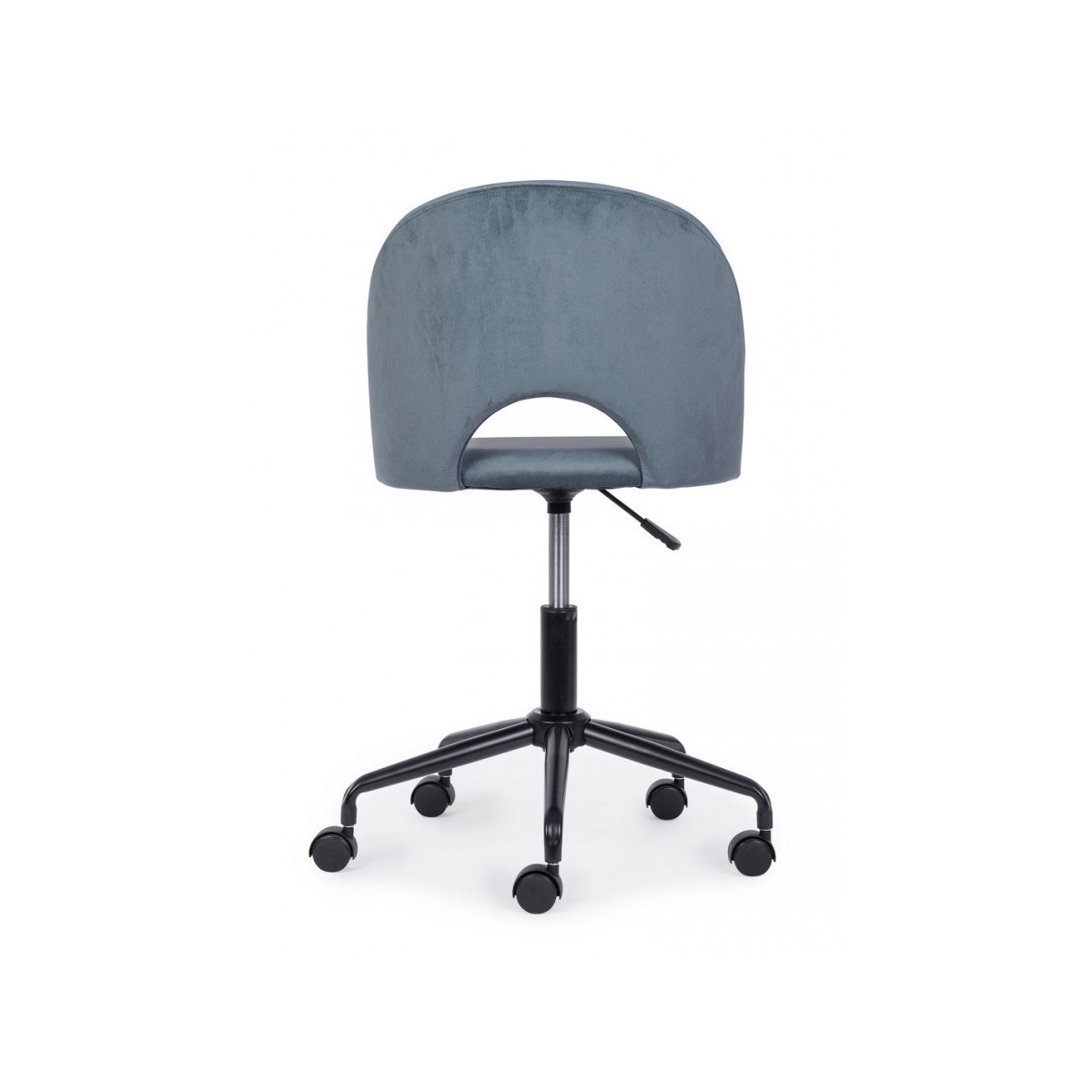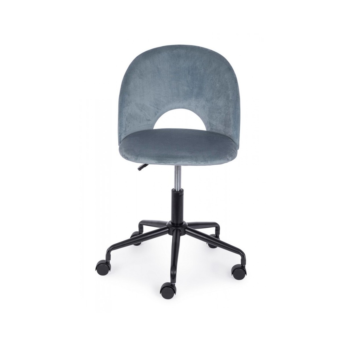 BASE IN ACCIAIO VERNICIATO A POLVERE Ø60 CM. RUOTE IN PLASTICA (PP). STRUTTURA IN COMPENSATO. IMBOTTITURA IN SCHIUMA POLIURETANICA. RIVESTIMENTO IN VELLUTO (100% POLIESTERE). REGOLABILE IN ALTEZZA CON SISTEMA A GAS. DA ASSEMBLARE.