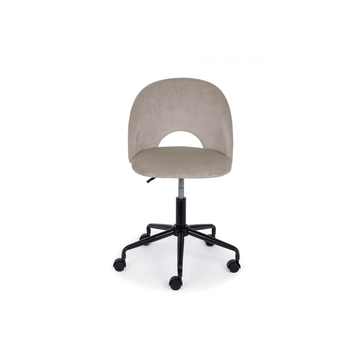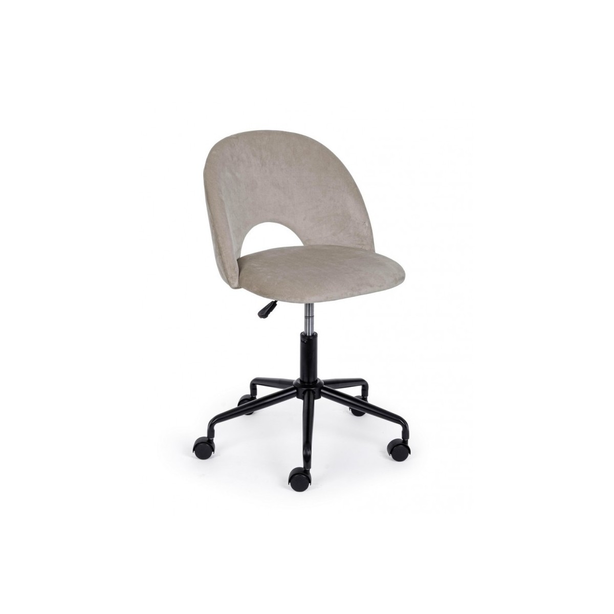 BASE IN ACCIAIO VERNICIATO A POLVERE Ø60 CM. RUOTE IN PLASTICA (PP). STRUTTURA IN COMPENSATO. IMBOTTITURA IN SCHIUMA POLIURETANICA. RIVESTIMENTO IN VELLUTO (100% POLIESTERE). REGOLABILE IN ALTEZZA CON SISTEMA A GAS. DA ASSEMBLARE.