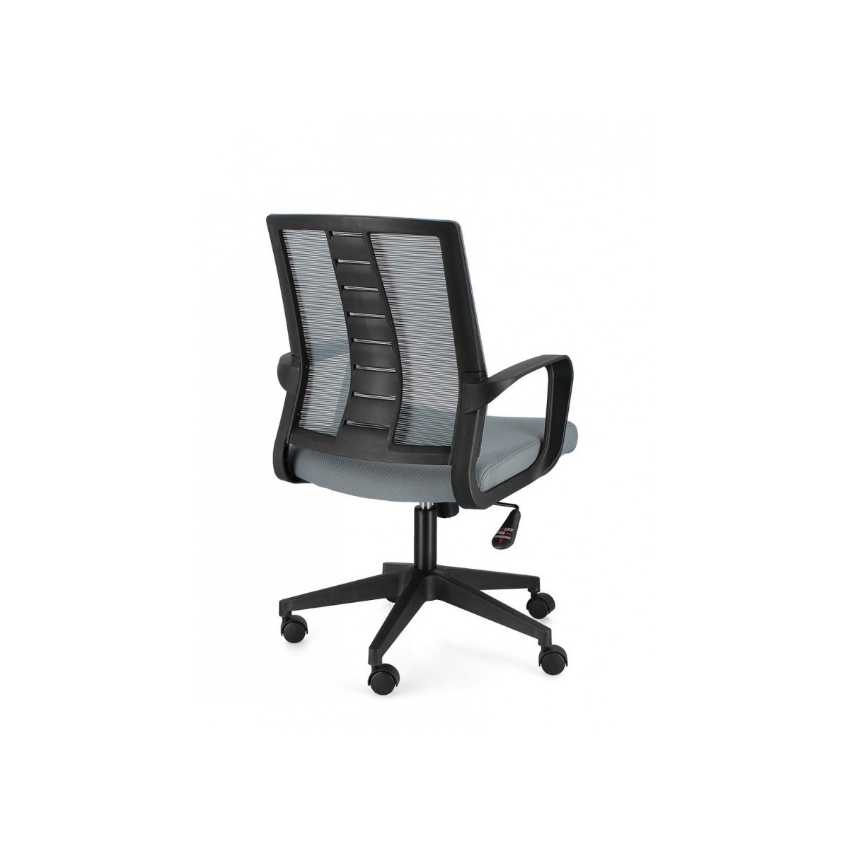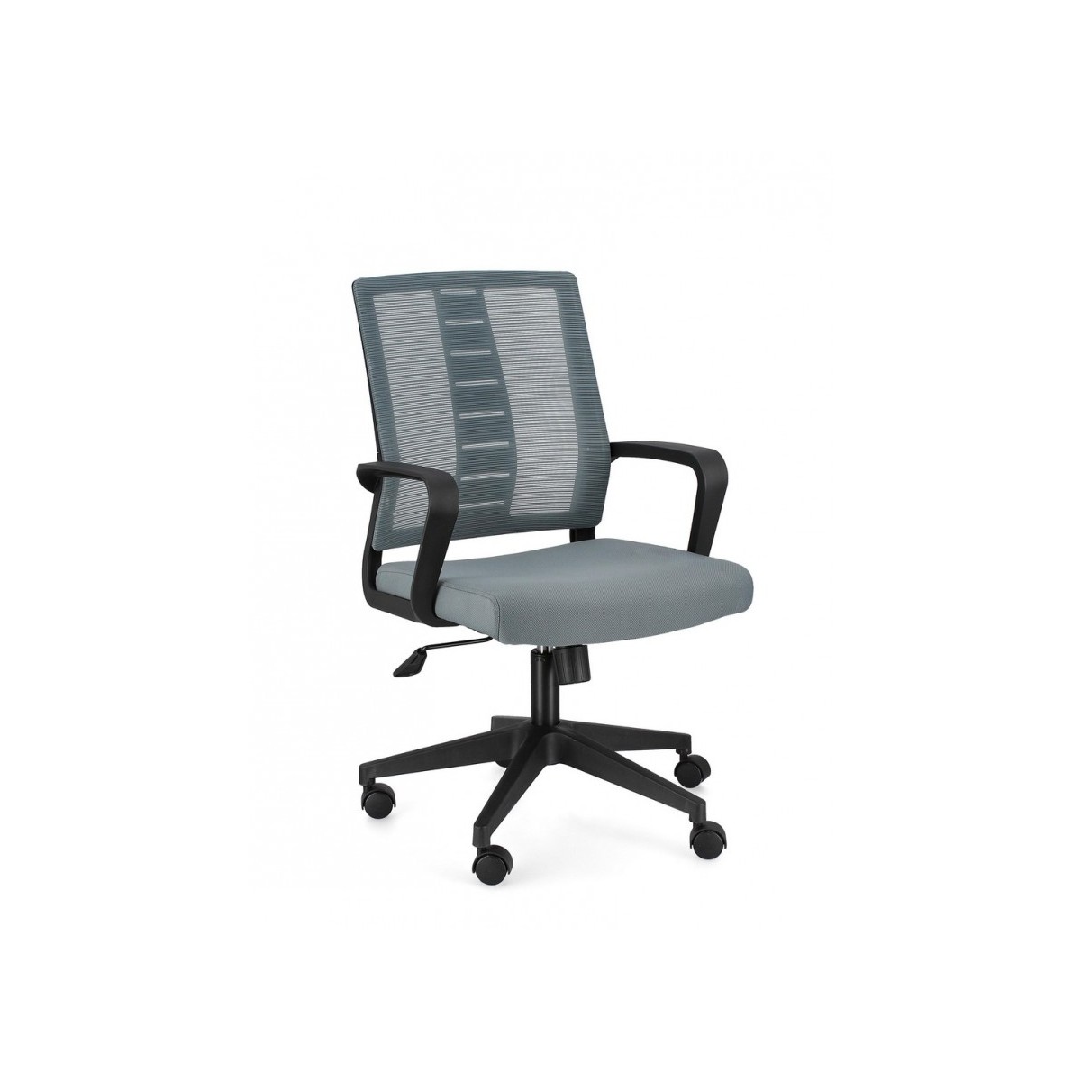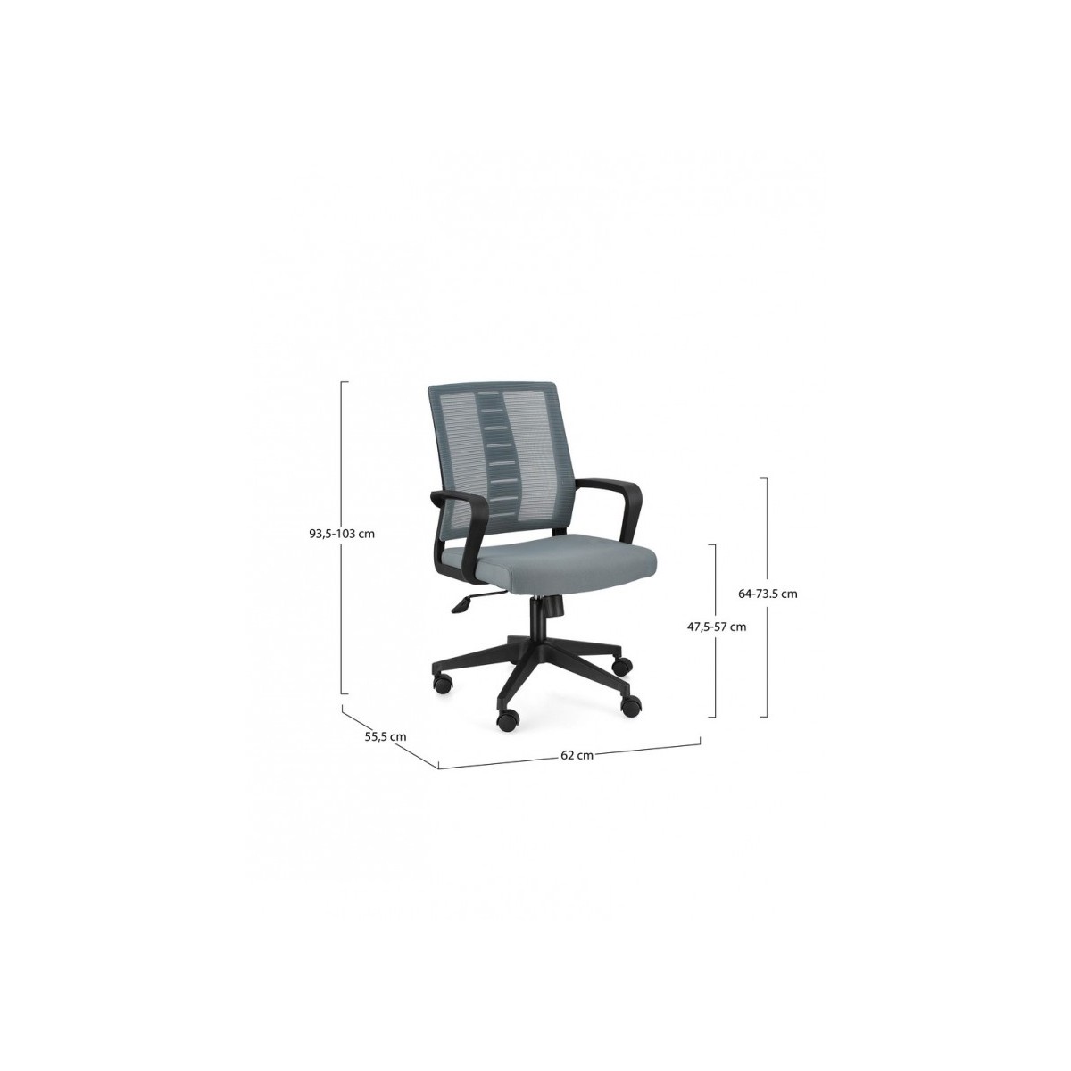 BASE IN NYLON Ø62.5 CM. RUOTE IN PLASTICA (PU). SEDUTA IMBOTTITA IN SCHIUMA POLIURETANICA E RIVESTITA IN TESSUTO A RETE POLIESTERE 100%. SCHIENALE IN PLASTICA (PP) RIVESTITO IN TESSUTO A RETE POLIESTERE 100%. ALTEZZA REGOLABILE. DA ASSEMBLARE.