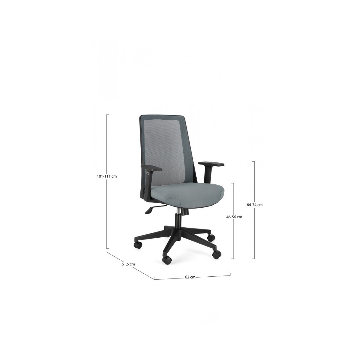 BASE IN NYLON Ø66 CM. RUOTE IN PLASTICA (PU). SEDUTA IMBOTTITA IN SCHIUMA POLIURETANICA E RIVESTITA IN TESSUTO A RETE POLIESTERE 100%. SCHIENALE IN PLASTICA (PP) RIVESTITO IN TESSUTO A RETE POLIESTERE 100%. ALTEZZA REGOLABILE. DA ASSEMBLARE.
