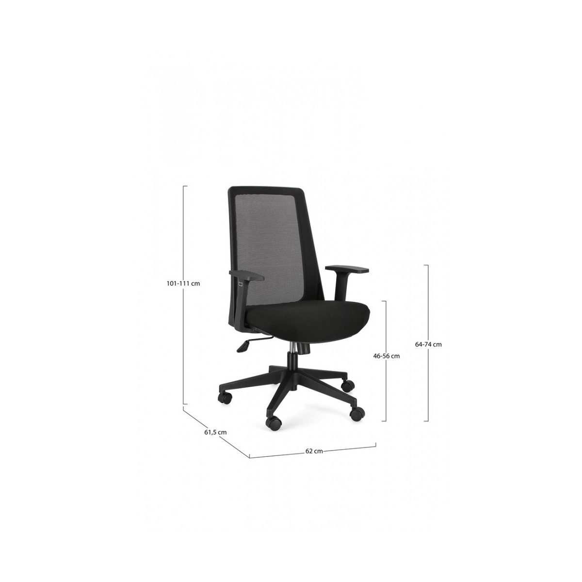 BASE IN NYLON Ø66 CM. RUOTE IN PLASTICA (PU). SEDUTA IMBOTTITA IN SCHIUMA POLIURETANICA E RIVESTITA IN TESSUTO A RETE POLIESTERE 100%. SCHIENALE IN PLASTICA (PP) RIVESTITO IN TESSUTO A RETE POLIESTERE 100%. ALTEZZA REGOLABILE. DA ASSEMBLARE.