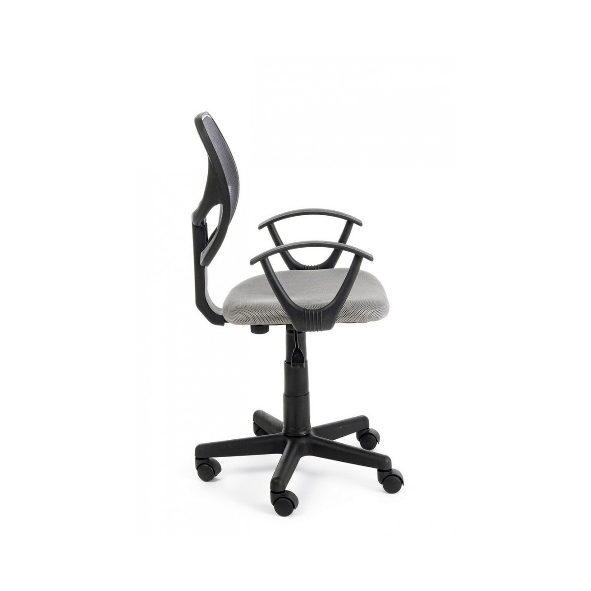 BASE IN NYLON Ø53 CM. RUOTE IN NYLON. SEDUTA IMBOTTITA IN SCHIUMA E RIVESTITA IN TESSUTO A RETE. SCHIENALE RIVESTITO IN TESSUTO A RETE. BRACCIOLO IN PLASTICA (PP). ALTEZZA REGOLABILE. DA ASSEMBLARE.