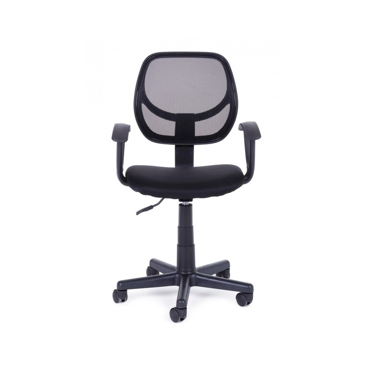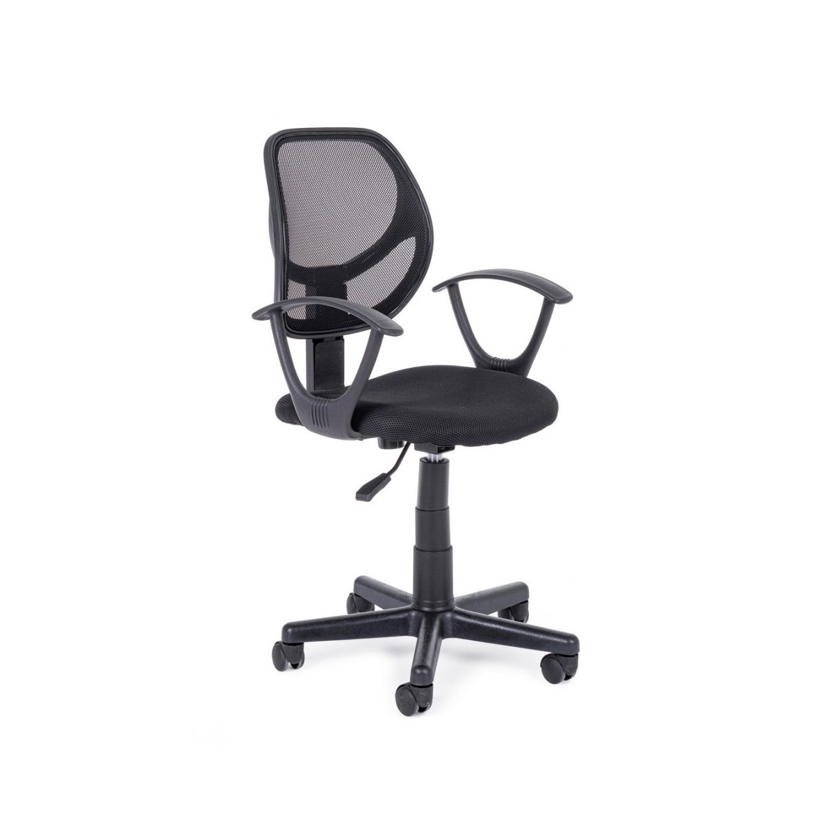 BASE IN NYLON Ø53 CM. RUOTE IN NYLON. SEDUTA IMBOTTITA IN SCHIUMA E RIVESTITA IN TESSUTO A RETE. SCHIENALE RIVESTITO IN TESSUTO A RETE. BRACCIOLO IN PLASTICA (PP). ALTEZZA REGOLABILE. DA ASSEMBLARE.