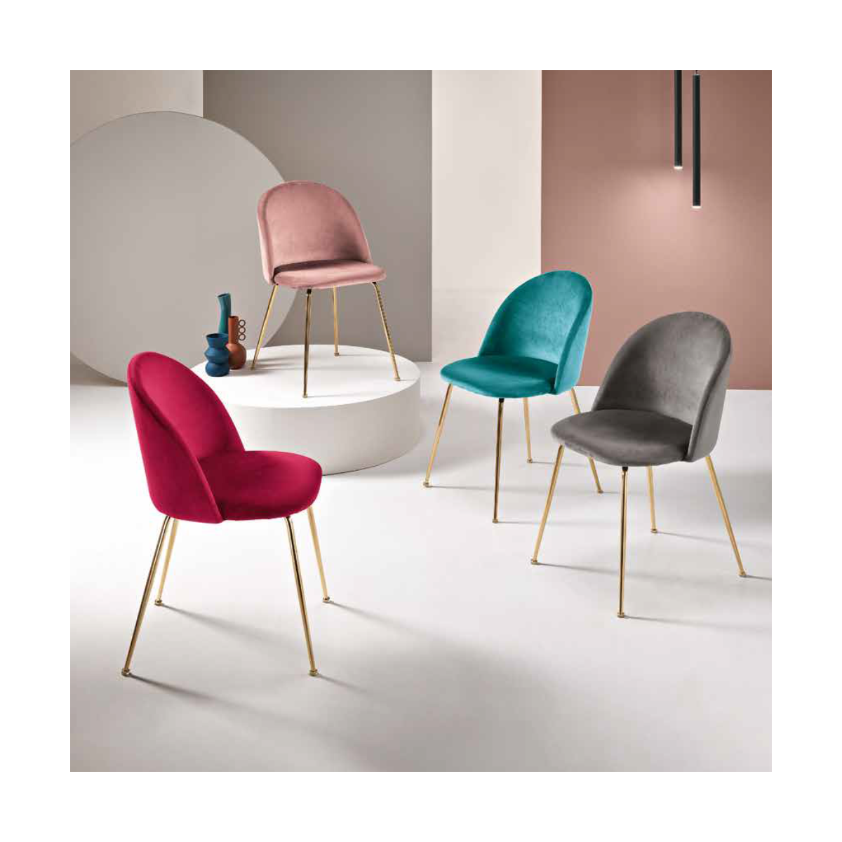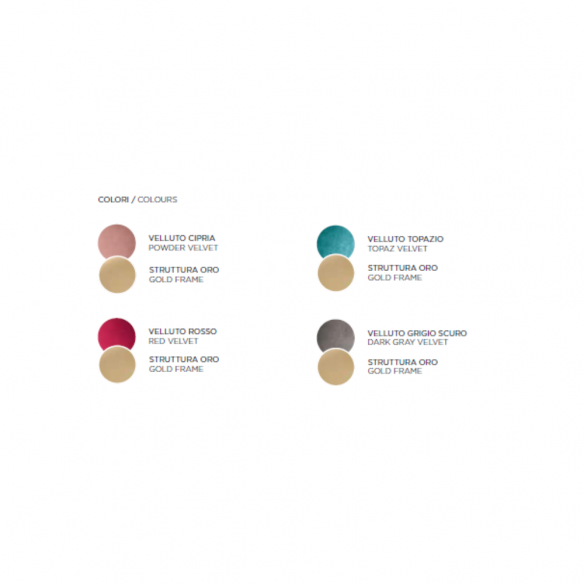 Sedia con struttura in metallo e seduta in velluto. Disponibile in diversi colori.
