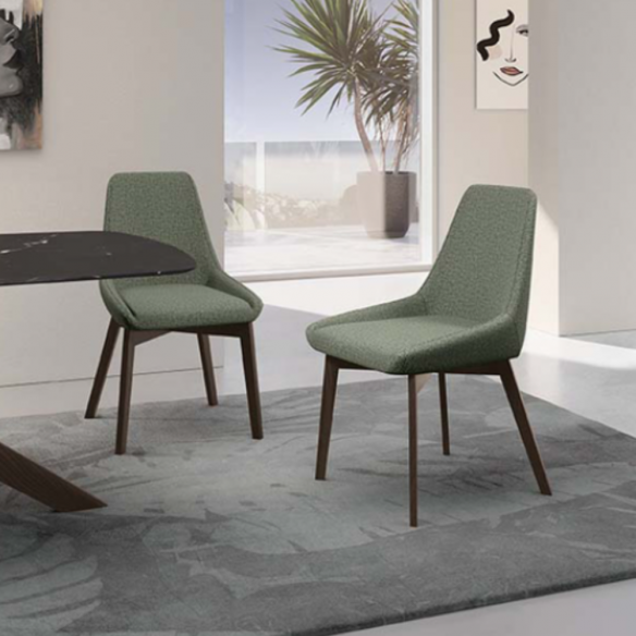 Sedia VERA con struttura in massello noce e seduta in tessuto.