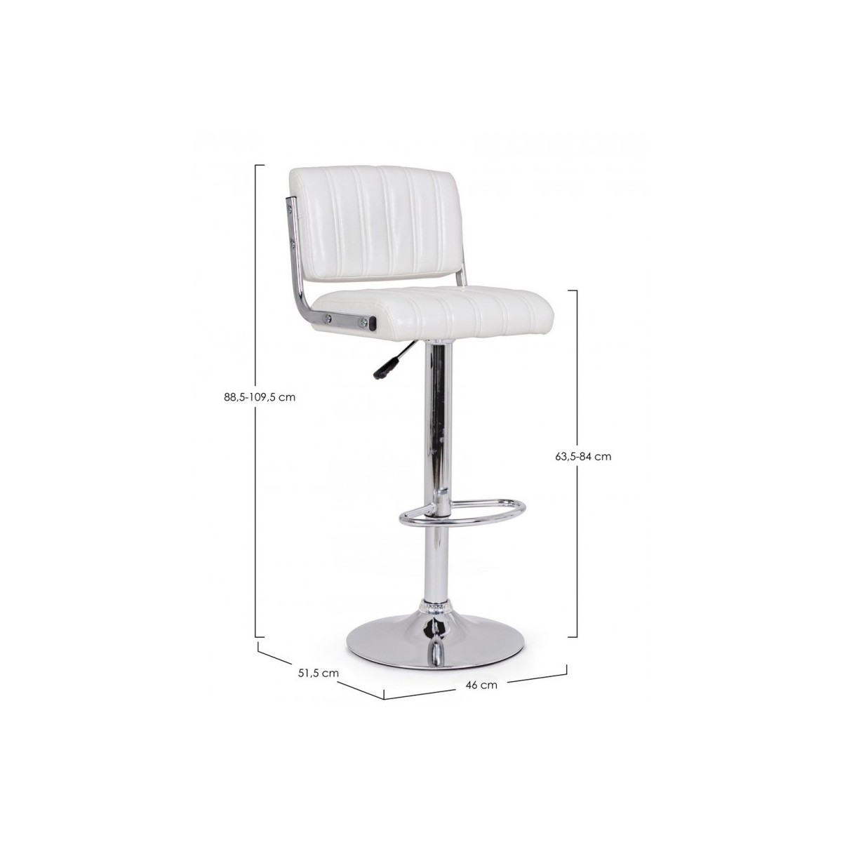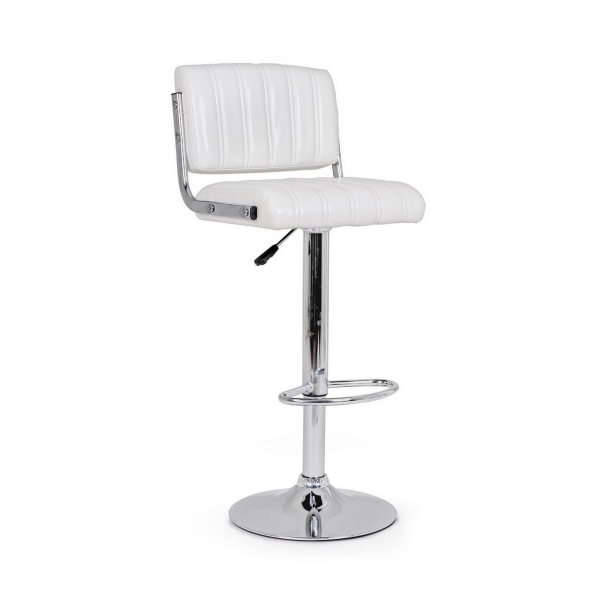 STRUTTURA IN ACCIAIO CROMATO. BASE Ø 38CM. IMBOTTITURA IN SCHIUMA POLIURETANICA NUOVA E RICICLATA DENSITA' 26 KG/M3. RIVESTIMENTO IN SIMILPELLE. ALTEZZA REGOLABILE. DA ASSEMBLARE.