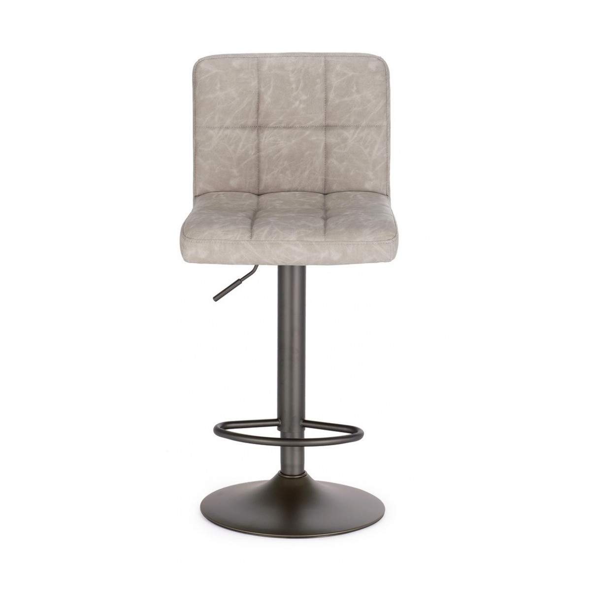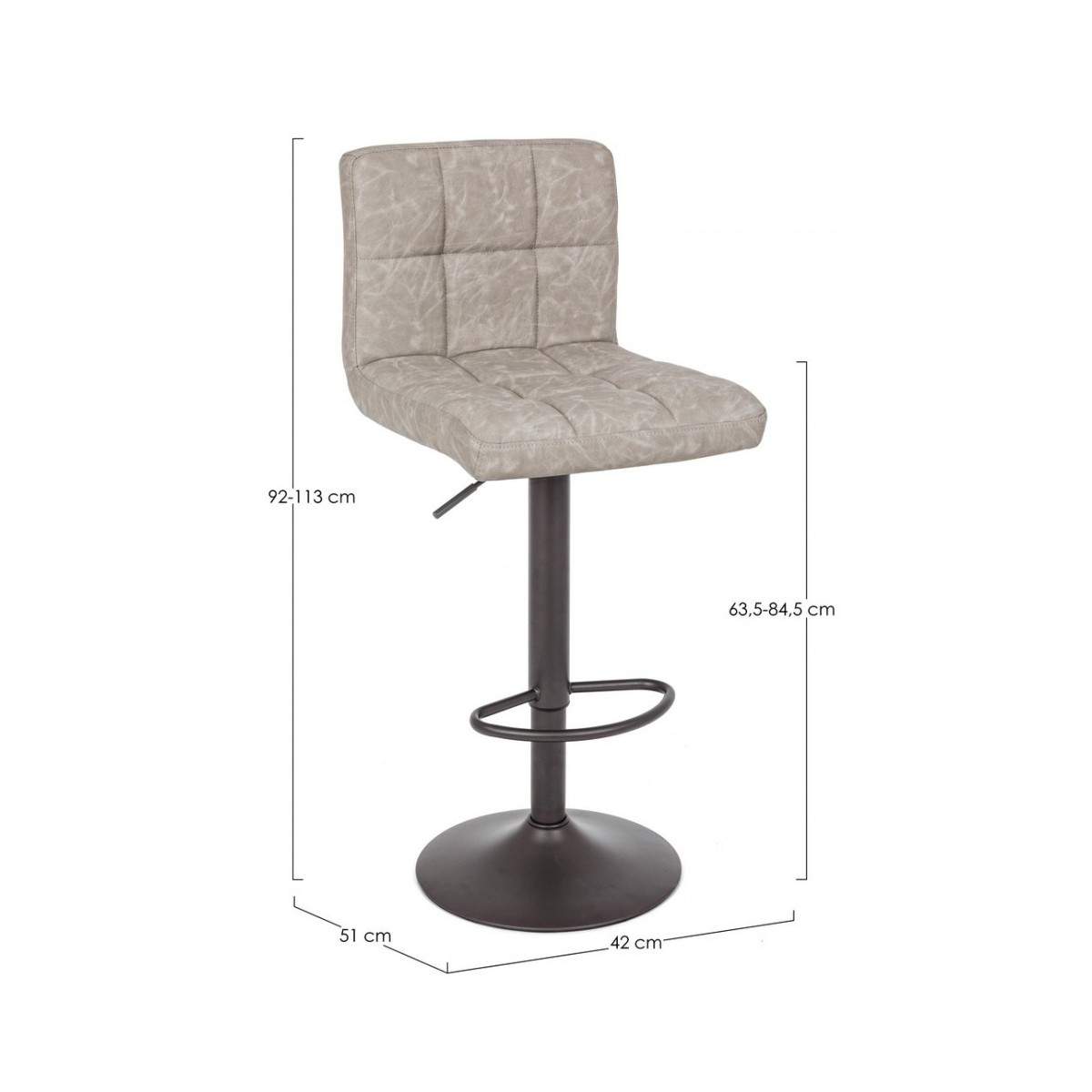 STRUTTURA E BASE GRIGIO OPACO IN ACCIAIO VERNICIATO A POLVERE (POLIESTERE). BASE Ø 38CM. IMBOTTITURA IN SCHIUMA POLIURETANICA NUOVA E RICICLATA DESNITA' 26 KG/M3. RIVESTIMENTO IN SIMILPELLE. ALTEZZA REGAOLABILE. DA ASSEMBLARE.