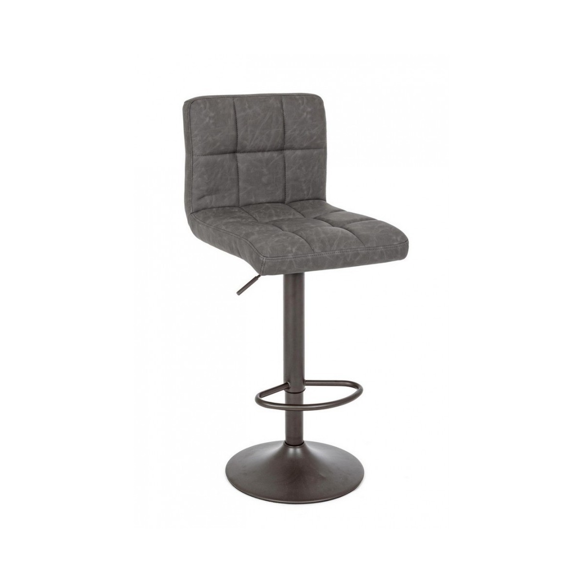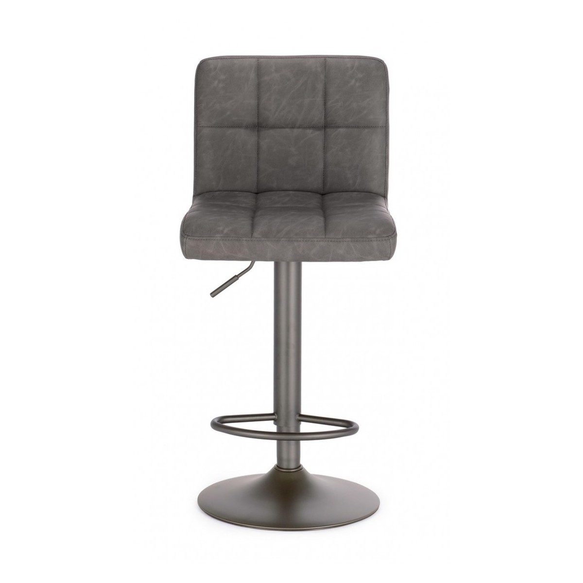 STRUTTURA E BASE GRIGIO OPACO IN ACCIAIO VERNICIATO A POLVERE (POLIESTERE). BASE Ø 38CM. IMBOTTITURA IN SCHIUMA POLIURETANICA NUOVA E RICICLATA DESNITA' 26 KG/M3. RIVESTIMENTO IN SIMILPELLE. ALTEZZA REGAOLABILE. DA ASSEMBLARE.