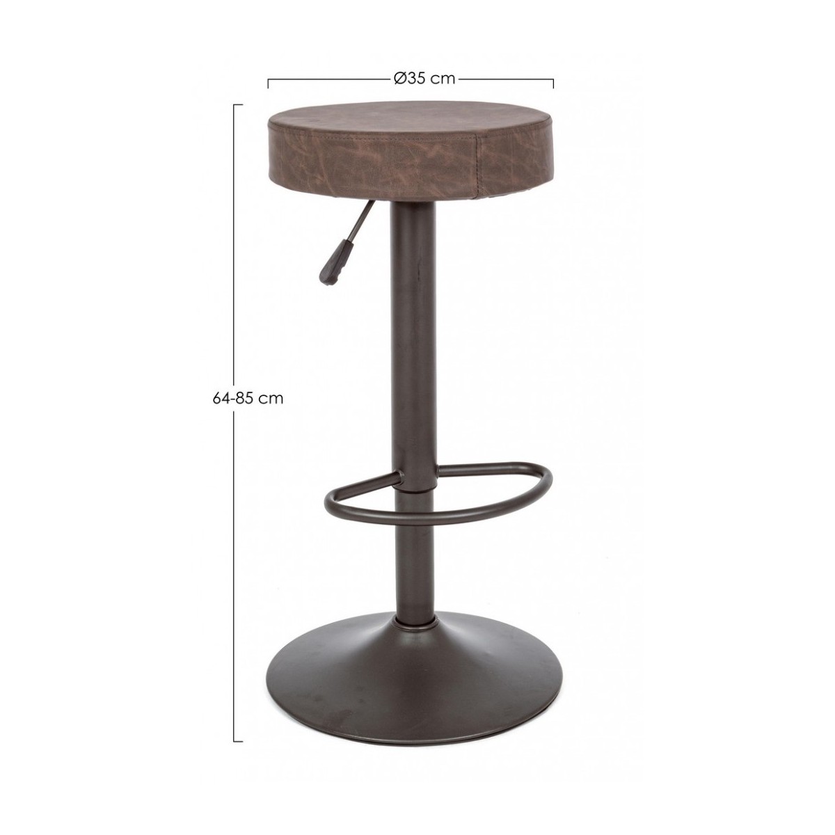 STRUTTURA GRIGIO OPACO IN ACCIAIO VERNICIATO A POLVERE (POLIESTERE). BASE Ø 38CM. IMBOTTITURA IN SCHIUMA POLIURETANICA NUOVA E RICICLATA DENSITA' 26 KG/M3. RIVESTIMENTO IN SIMILPELLE. ALTEZZA REGOLABILE. DA ASSEMBLARE.