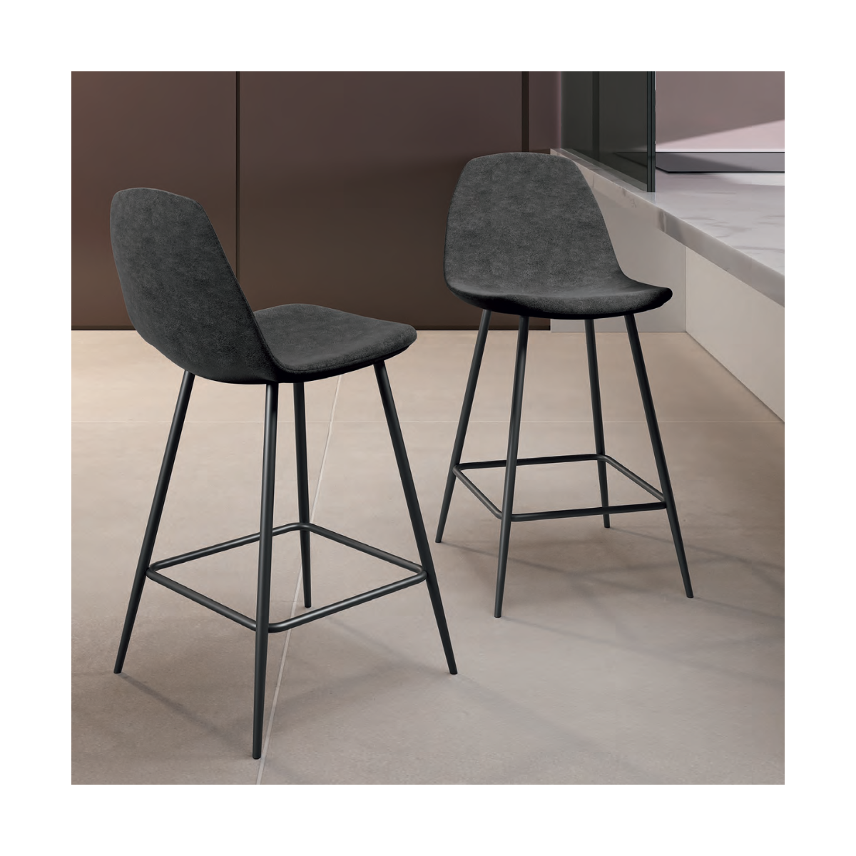 Lo stile industrial incontra l’eleganza retrò nel raffinato design dello sgabello fisso BRIGITTE di Stones. Con la sua struttura in metallo verniciato antracite e la seduta rivestita in tessuto Soft-Touch effetto vintage, questo sgabello racconta una storia fatta di contrasti armoniosi, materiali vissuti e atmosfere d'altri tempi, perfettamente reinterpretati in chiave contemporanea.