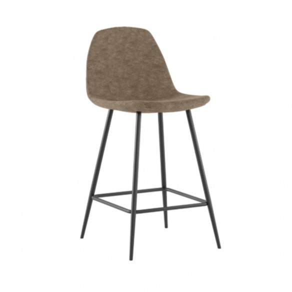 Sgabello fisso BRIGITTE con struttura in metallo verniciato antracite e seduta in tessuto Soft-vintage.
