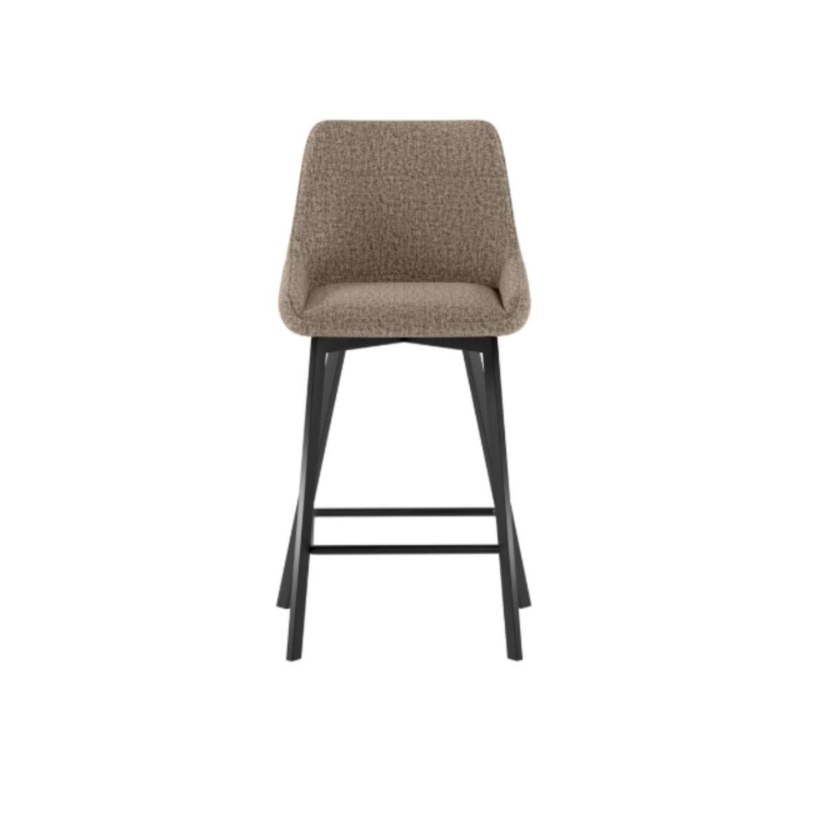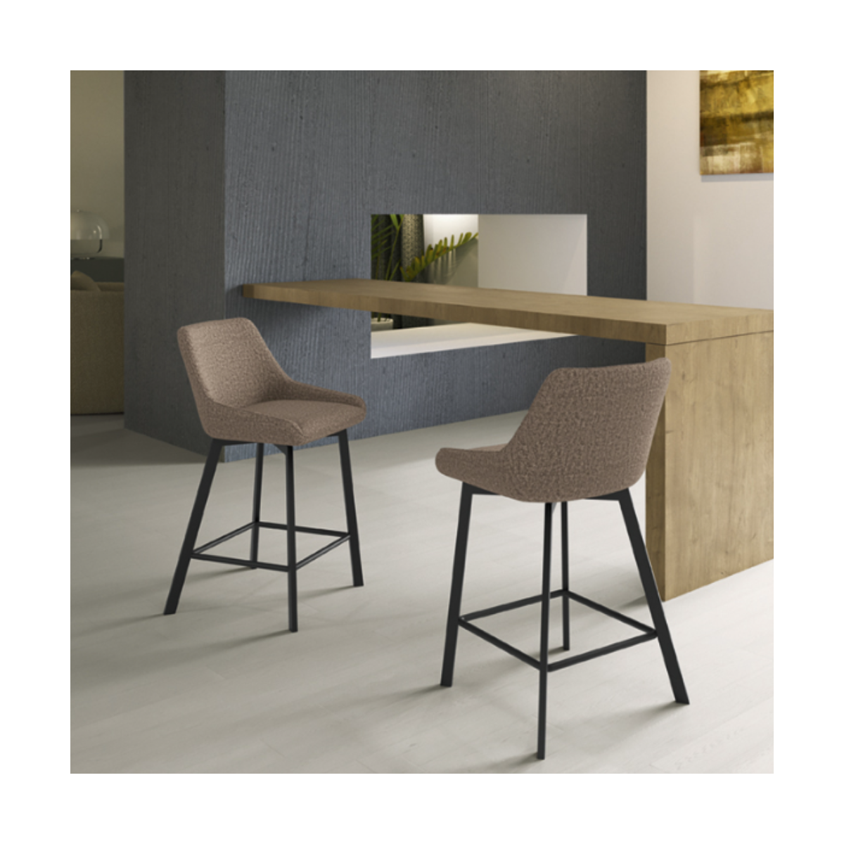 Sgabello fisso FOX con struttura in metallo verniciato nero e seduta rivestita ed imbottita in tessuto.