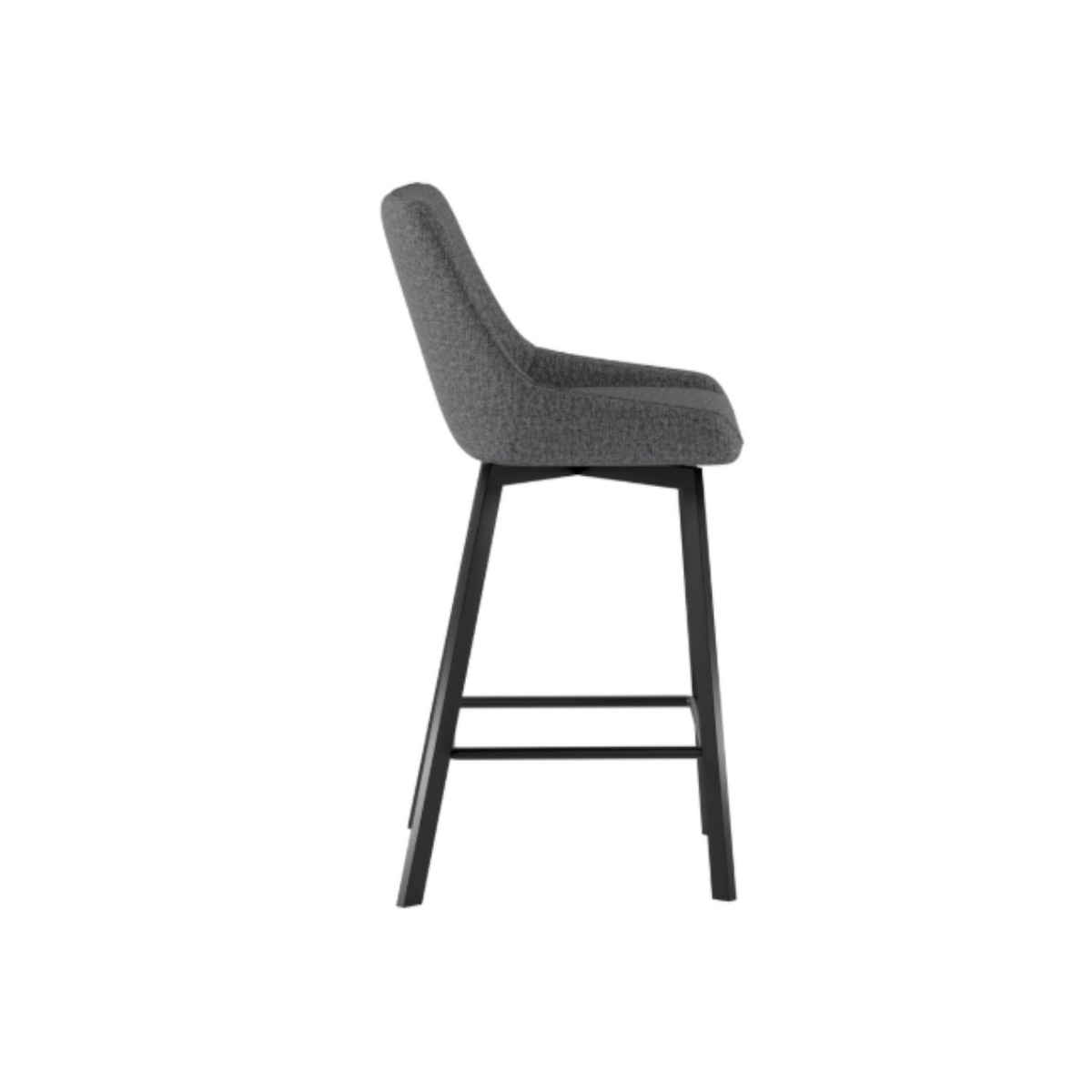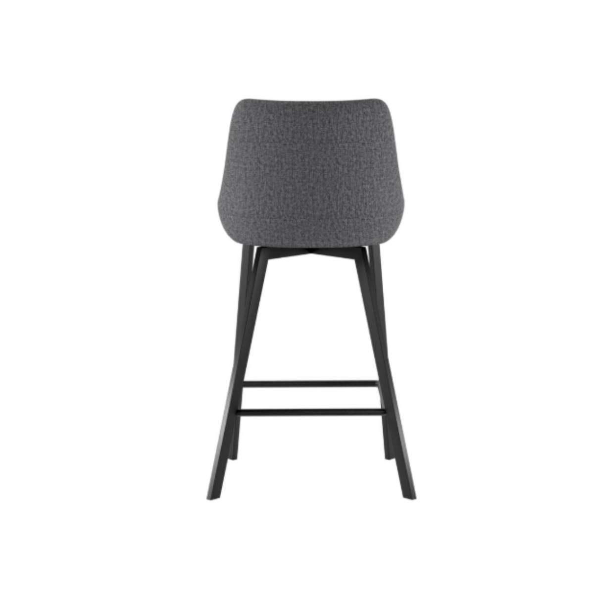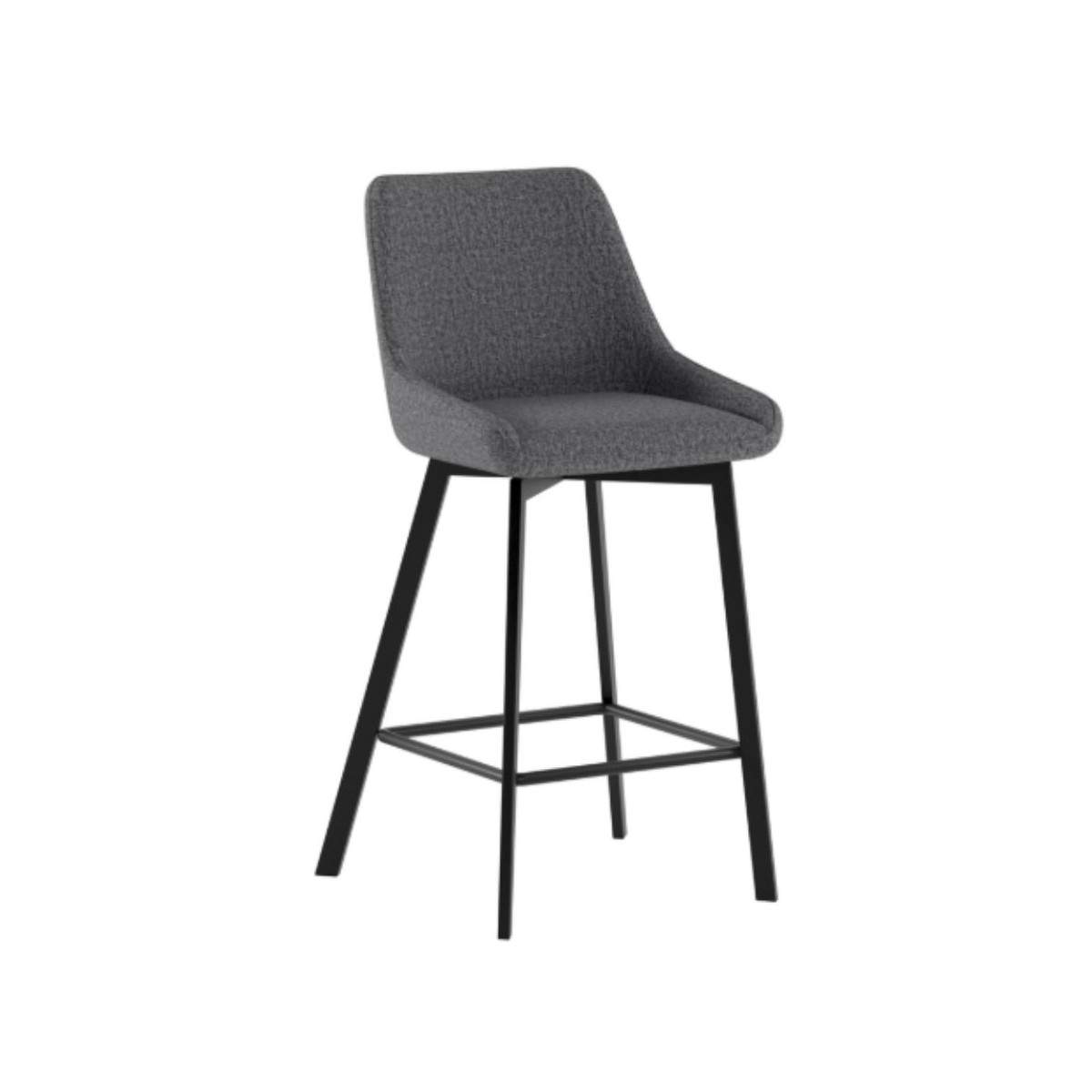 Sgabello fisso FOX con struttura in metallo verniciato nero e seduta rivestita ed imbottita in tessuto.