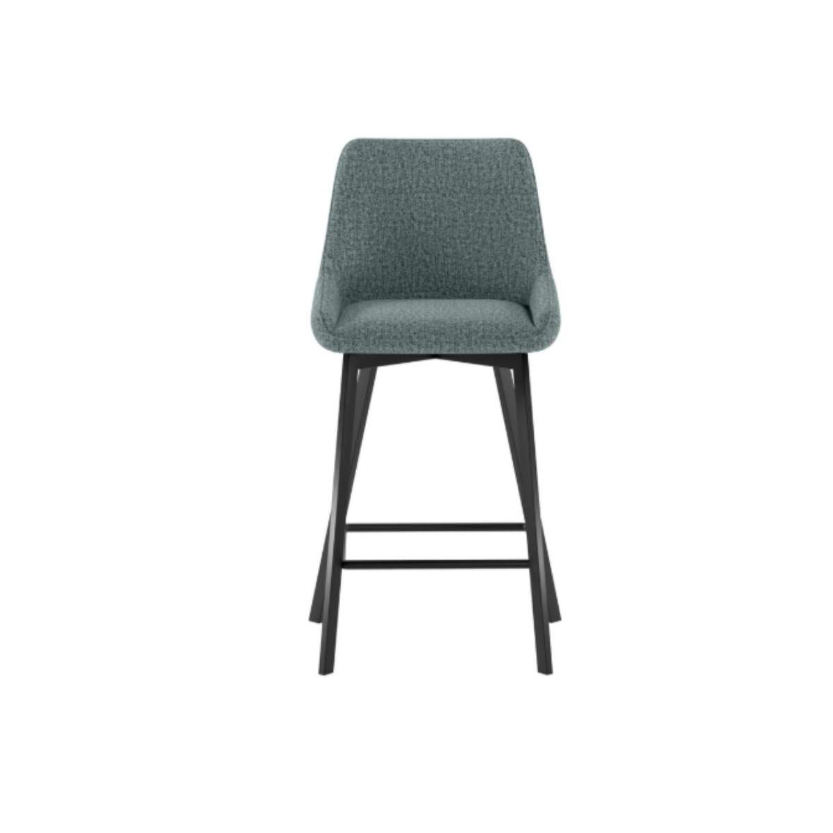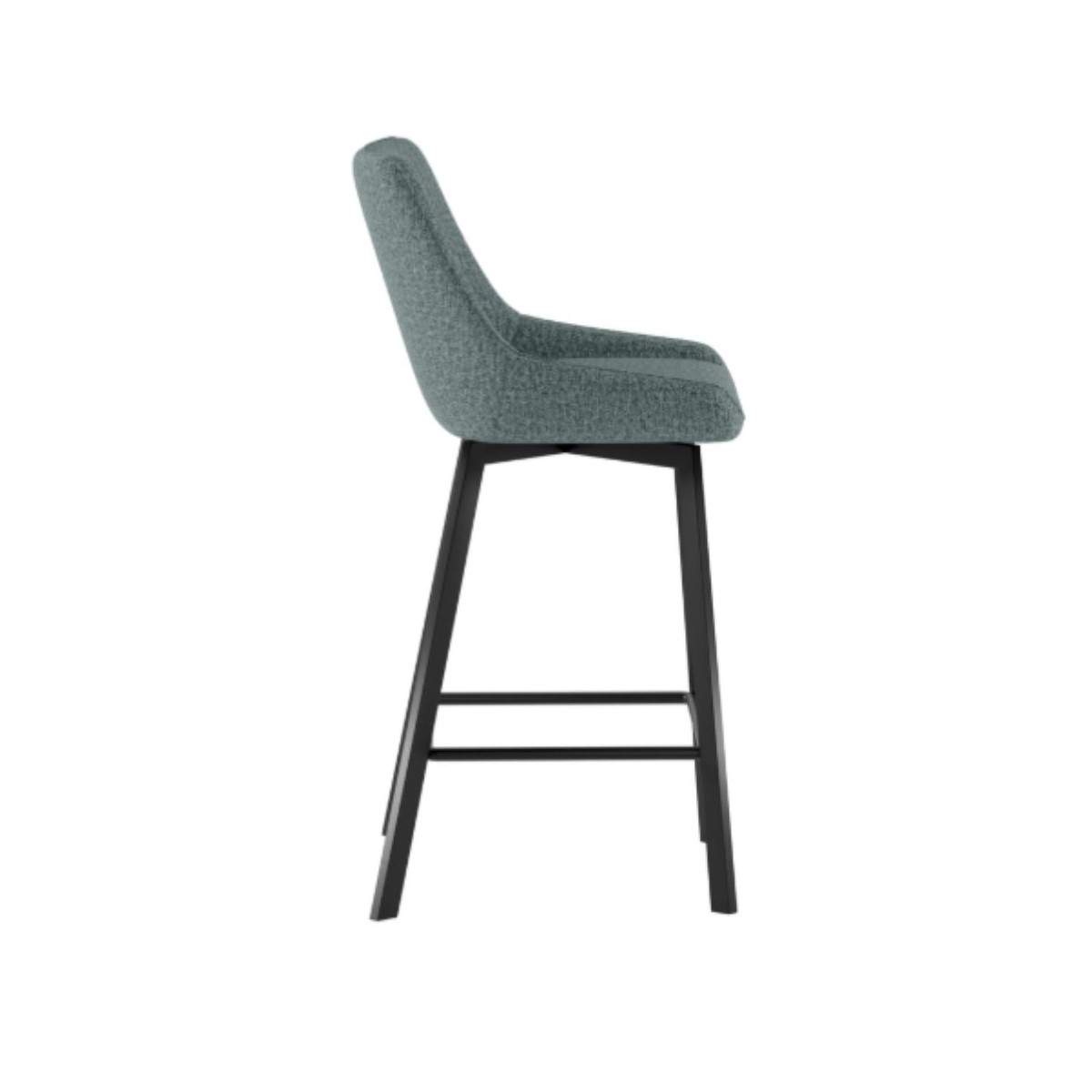 Sgabello fisso FOX con struttura in metallo verniciato nero e seduta rivestita ed imbottita in tessuto.