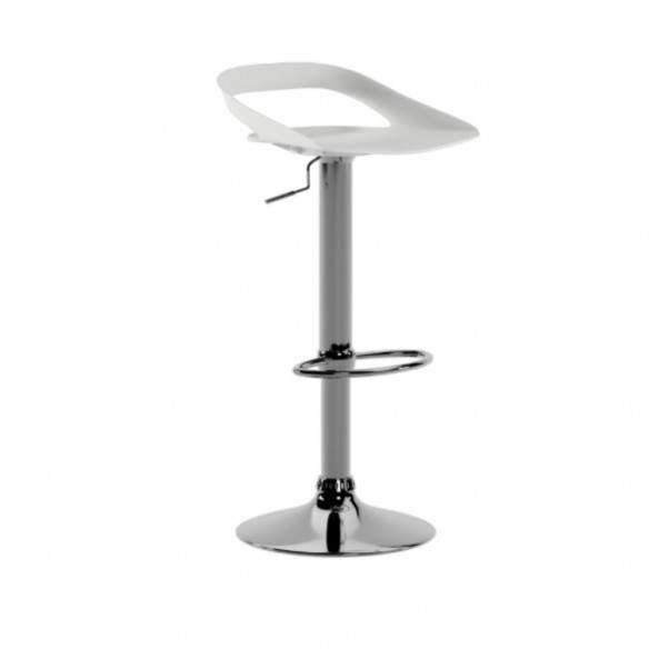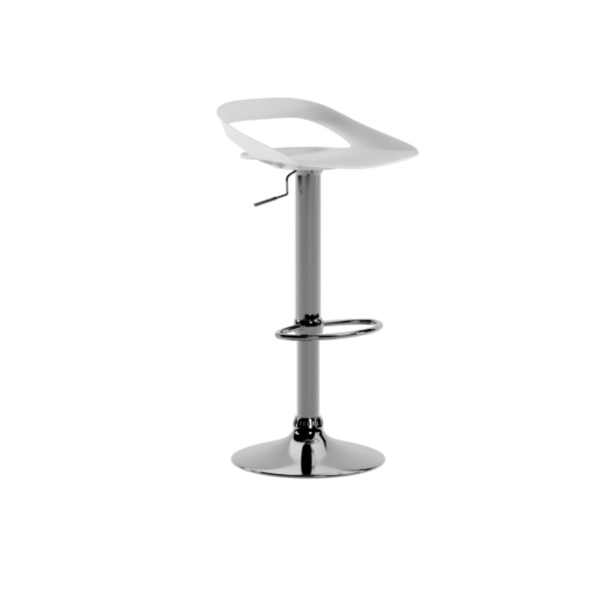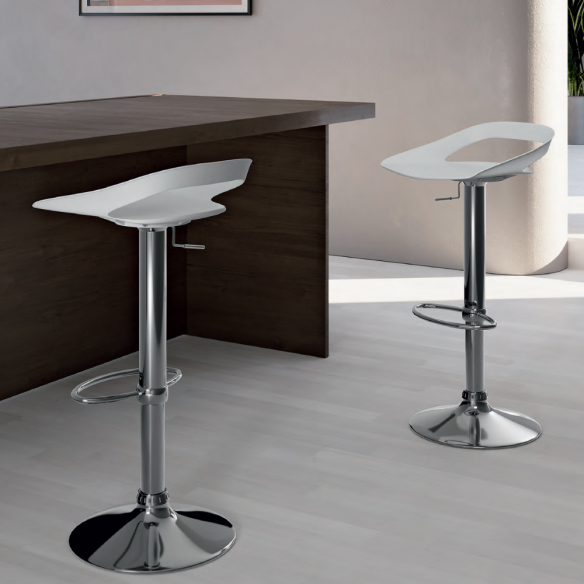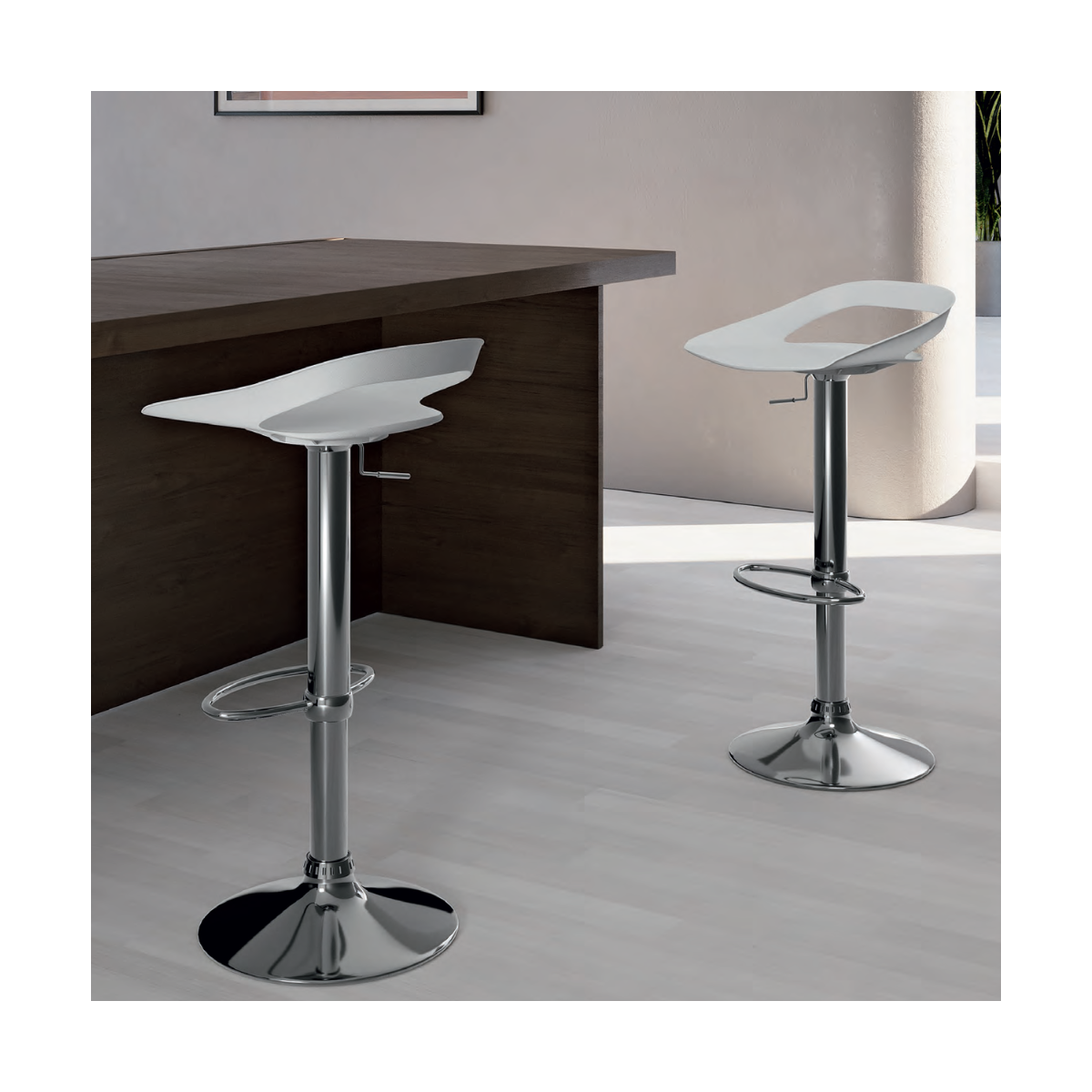 Sgabello regolabile GLEN con struttura in metallo cromato e seduta in polipropilene.