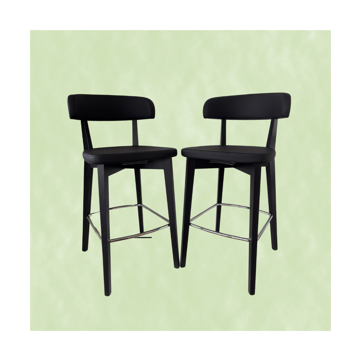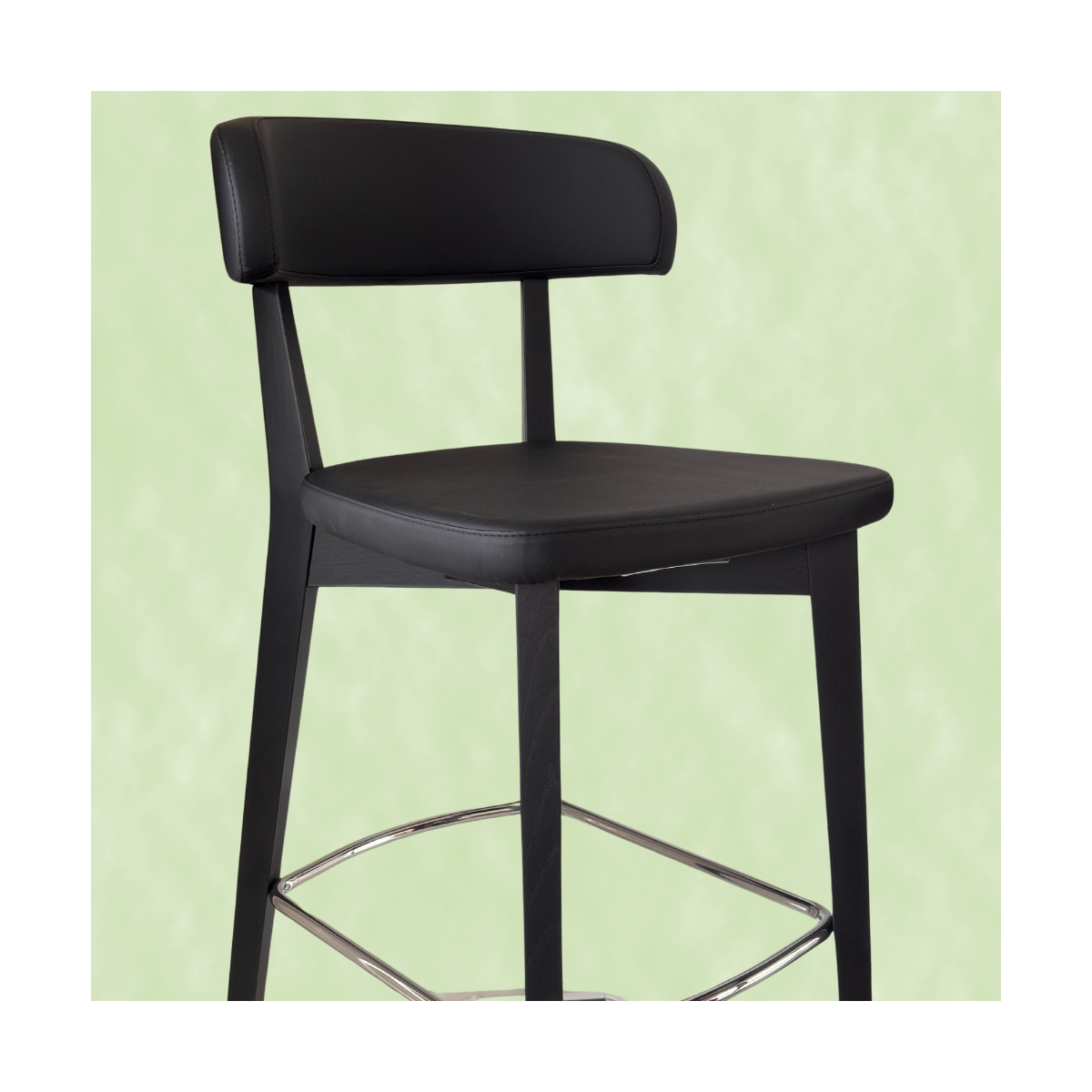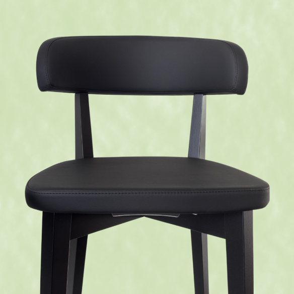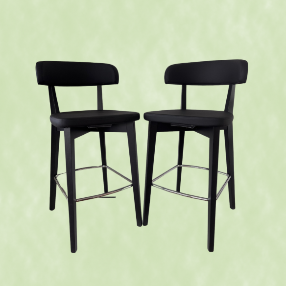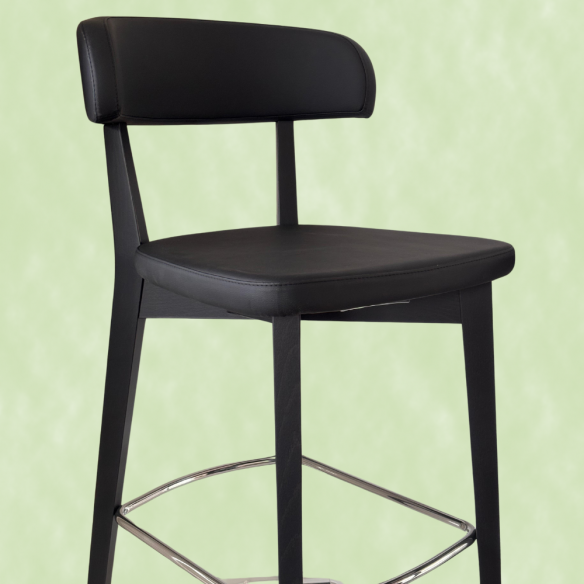 Sgabello modello SIREN, dal design nordico, struttura in legno con poggiapiedi in metallo, seduta ampia e confortevole.