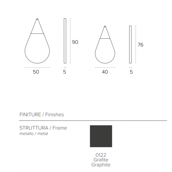 Specchiera DROPS di Target Point cn struttura in metallo grafite e superficie argento.