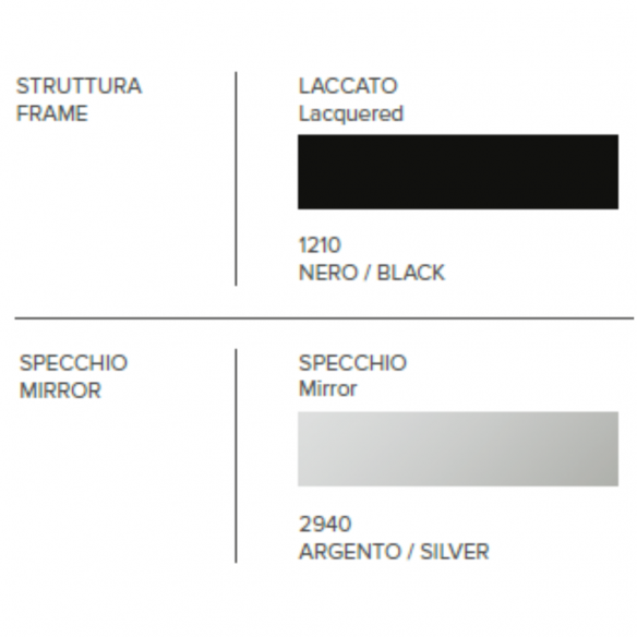 Specchiera TOKEN di Target Point con struttura in laccato nero e specchio argento.