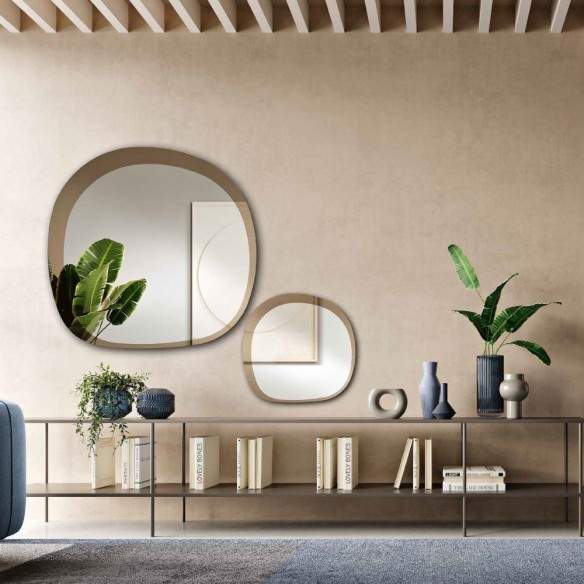 La cornice, disponibile nelle eleganti combinazioni Nero/specchio e Bronzo/specchio, aggiunge un dettaglio raffinato che si integra con qualsiasi stile, dai toni più moderni a quelli più caldi e ricercati.