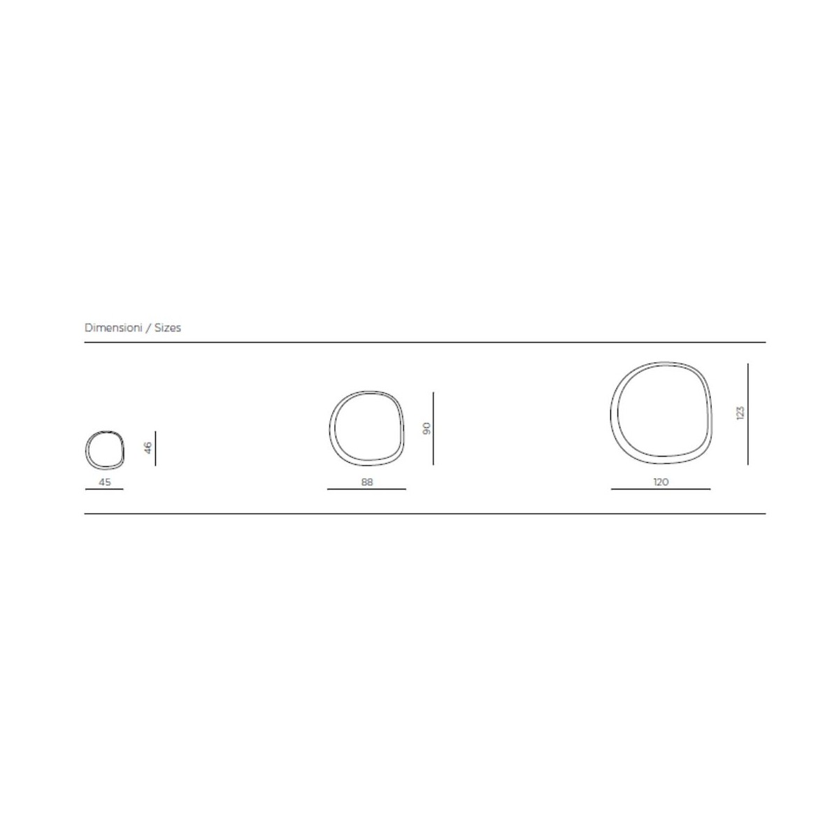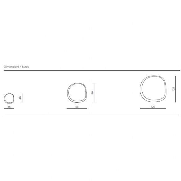 Ogni dimensione racconta un uso diverso: la versione più piccola arreda con discrezione ingressi e bagni, la misura media è perfetta come punto luce in camera o soggiorno, mentre la versione più grande diventa un vero e proprio elemento scenografico, capace di amplificare la luminosità e donare profondità all’ambiente.