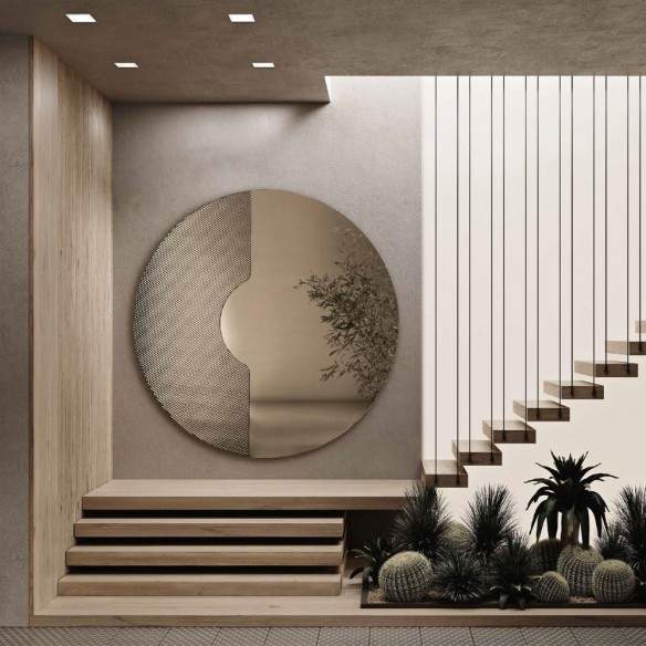Disponibile nelle tonalità fumè e bronzo, ILIO si adatta sia a contesti moderni che a interior più ricercati. La scelta tra due dimensioni, Ø 160 cm e Ø 120 cm, permette di collocarlo con equilibrio in bagno, ingresso o zona living, diventando un punto focale raffinato senza risultare ingombrante.