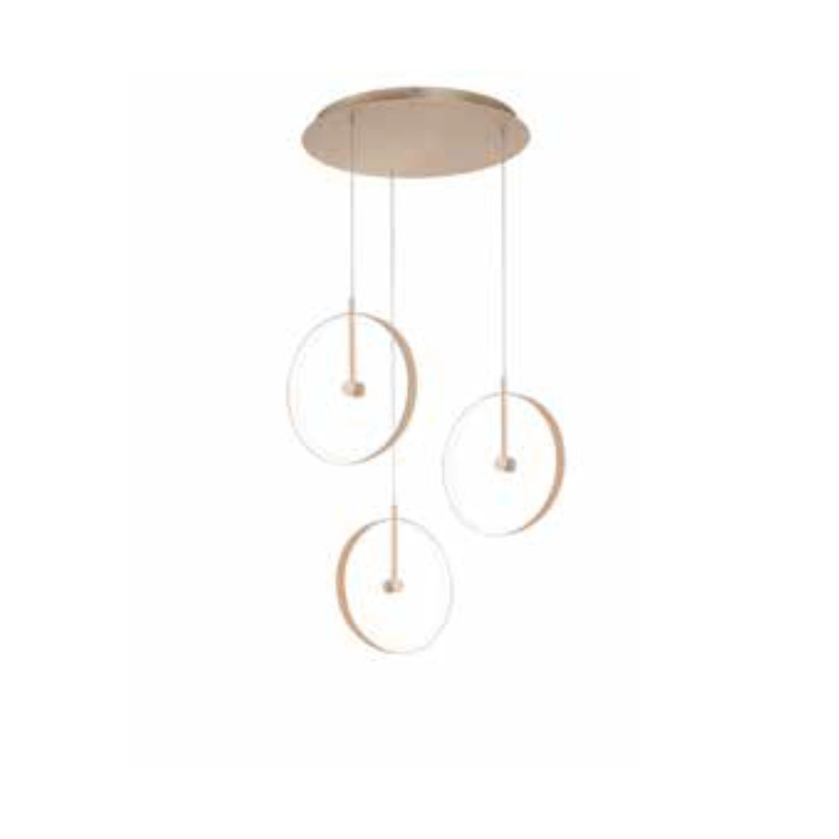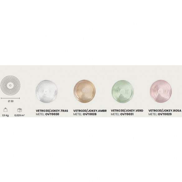 La struttura JOKEY unisce l'essenzialità del metallo verniciato con la leggerezza decorativa del vetro, lavorato con eleganti righe concentriche che creano giochi di luce delicati e dinamici. La montatura oro, sobria ma preziosa, valorizza ogni ambiente con un tocco contemporaneo e raffinato.