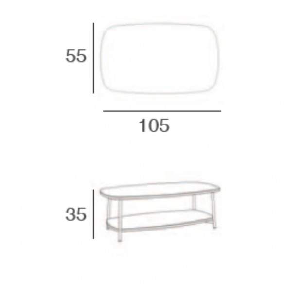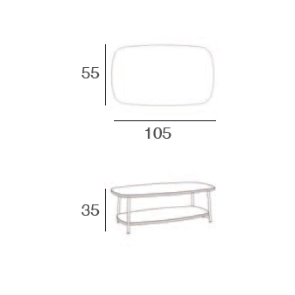 Tavolino MILORD ART.1041 rettangolare a due piani in legno rivestito melaminico ad angoli raggiati.