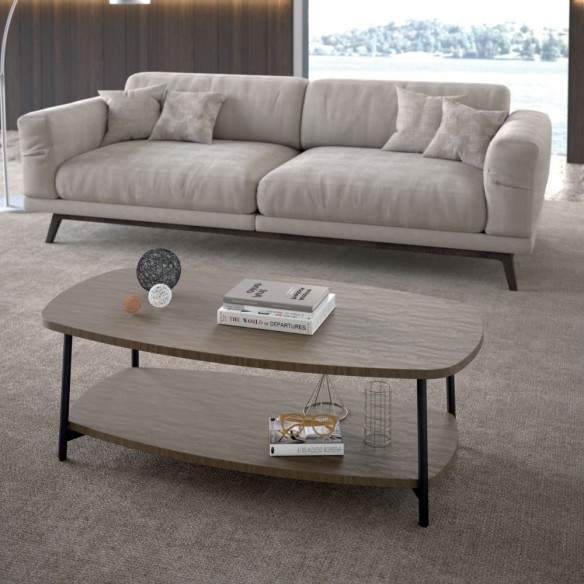 La sua struttura in metallo con verniciatura epossidica antracite garantisce stabilità e durata nel tempo, mentre i due piani in legno rivestito melaminico ad angoli arrotondati offrono ampio spazio per oggetti, libri o decorazioni, con un tocco di eleganza moderna.
