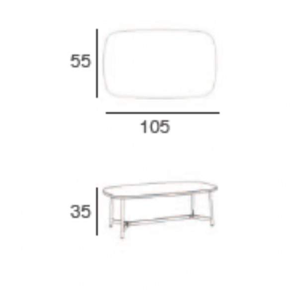 Tavolino MILORD ART.1040 rettangolare piano in legno rivestito melaminico ad angoli raggiati.