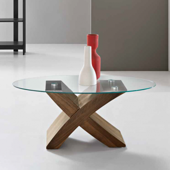 Tavolino ovale con piano in vetro. Disponibile in diversi colori.