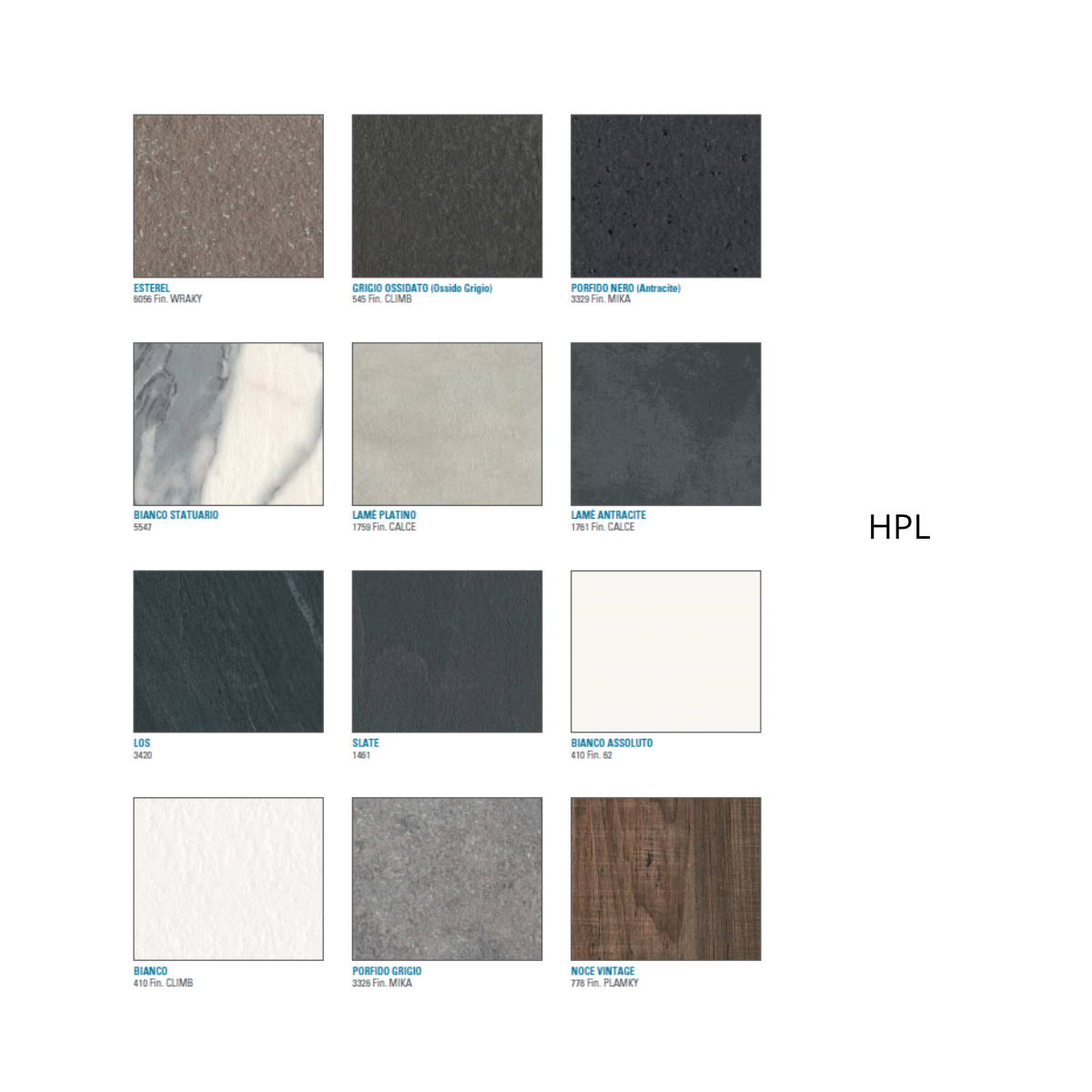 Con il piano in vetro lucido, laminam di categoria A e B, l'allunga è in Hpl.