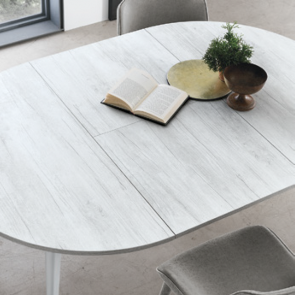 Grazie alla sua funzionalità allungabile, il tavolo AIACE si adatta con versatilità a ogni esigenza: compatto e discreto per la vita di tutti i giorni, si trasforma in pochi istanti in una superficie ampia e accogliente per ospitare familiari e amici durante momenti speciali.