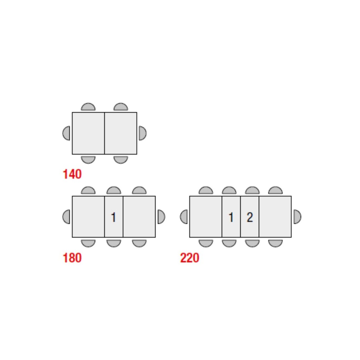 Grazie alle 2 allunghe da 40 cm, CAPRI si adatta con facilità a ogni esigenza: compatto per l’uso quotidiano, ampio e accogliente quando hai ospiti. Il suo design pulito e moderno lo rende ideale sia per ambienti minimal che per spazi più ricercati.