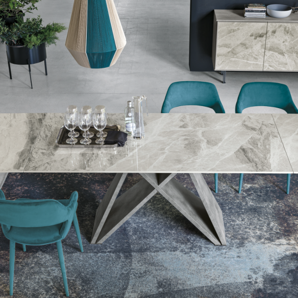 Tavolo allungabile DELTA con struttura in laminato e piano in gres porcellanato.