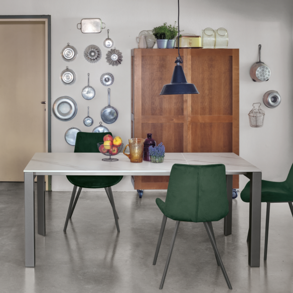 Il piano, vero protagonista del tavolo, è realizzato in gres, un materiale noto per la sua resistenza, facilità di manutenzione e bellezza estetica. Puoi scegliere tra una finitura opaca, per un look sobrio e minimalista, o lucida, per aggiungere un tocco di luminosità e raffinatezza al tuo spazio. Grazie alla sua funzione allungabile, l’ENEA 130 si trasforma con facilità per accogliere più ospiti, passando da dimensioni compatte e pratiche a una maggiore capacità, perfetta per cene conviviali o riunioni familiari.