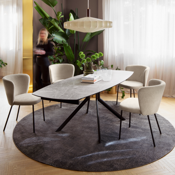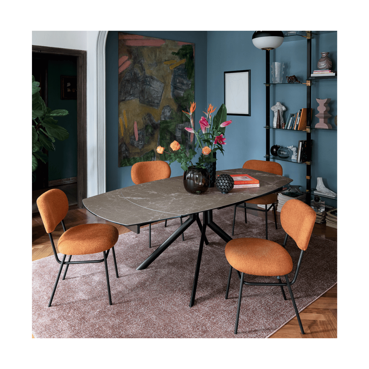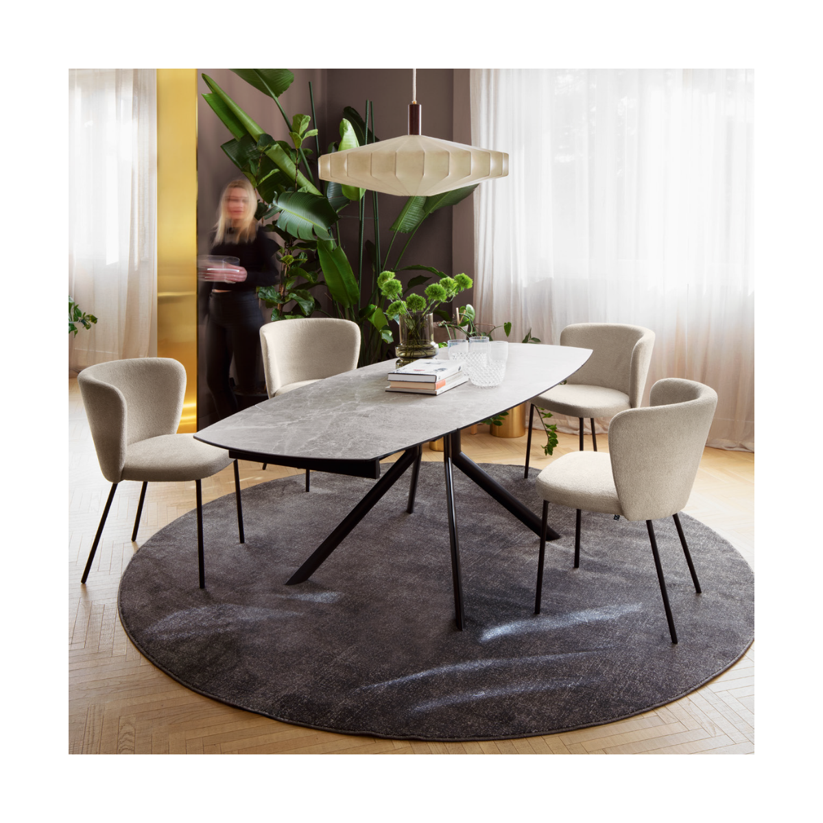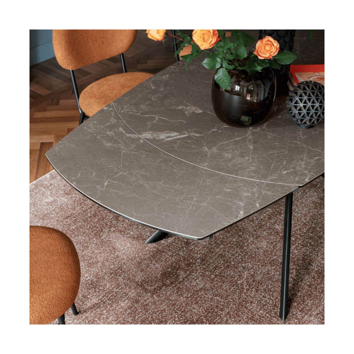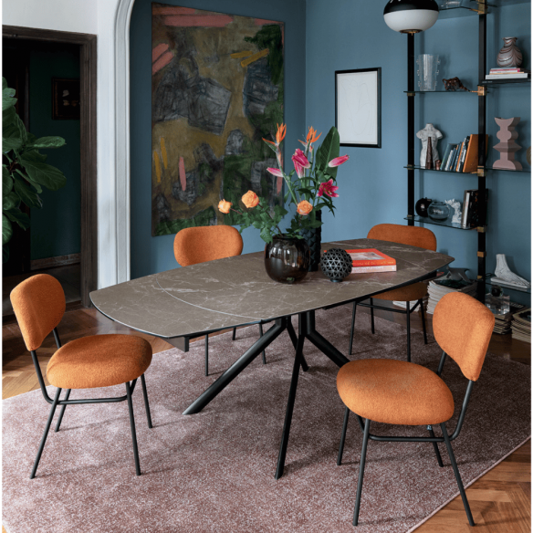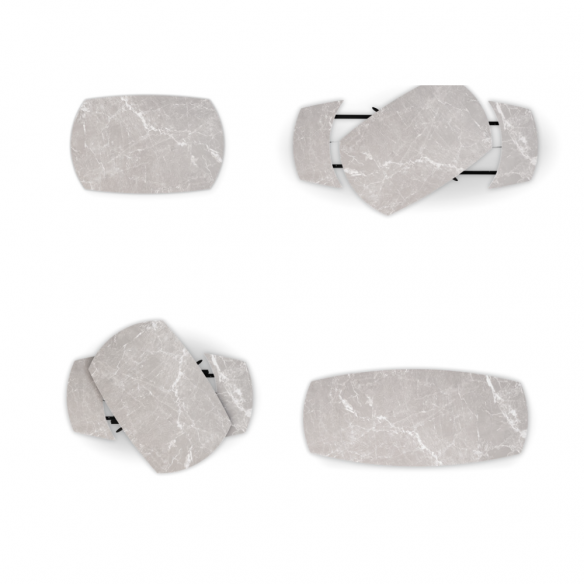 Dotato di meccanismo di allunga automatico e simultaneo delle due allunghe, GIOVE PLUS si estende con facilità e rapidità, adattandosi in un attimo alle tue esigenze di spazio. Il basamento e il cassonetto in metallo verniciato garantiscono stabilità e robustezza, mentre il piano e le allunghe in ceramica conferiscono al tavolo un aspetto pregiato, resistente e facilissimo da pulire.