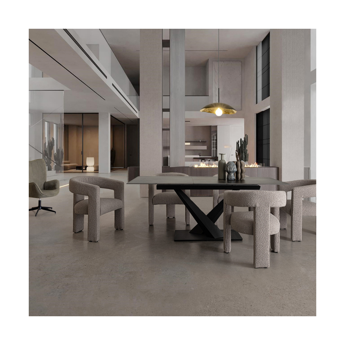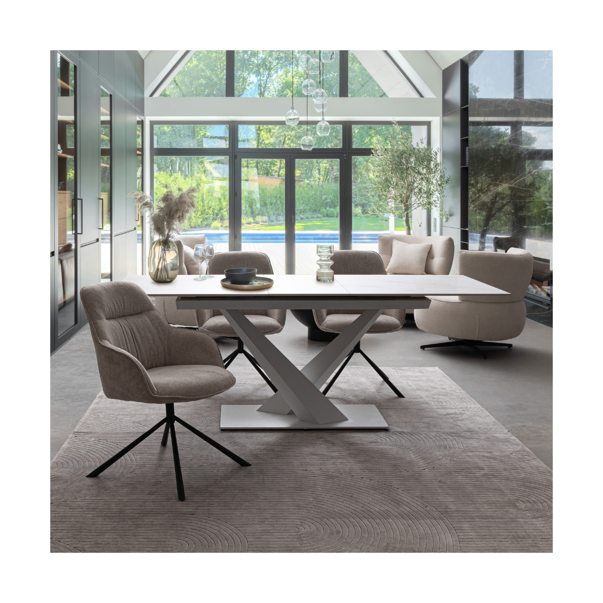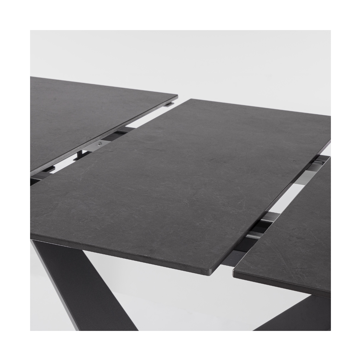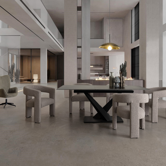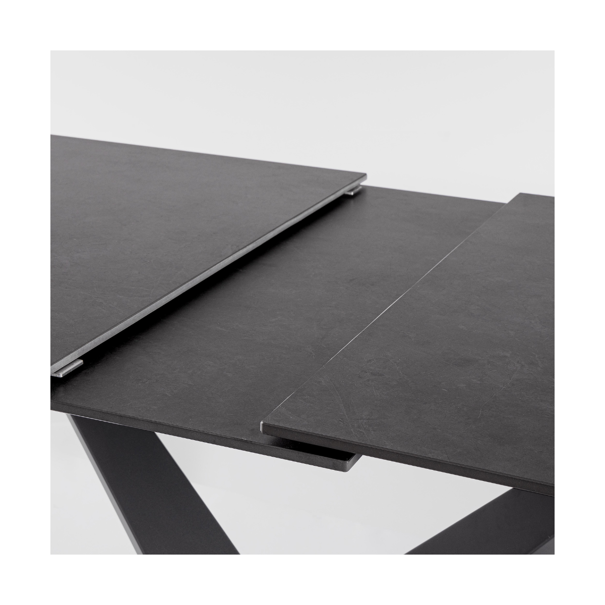 Il tavolo allungabile JOHANNES unisce linee pulite e finiture moderne per arredare con stile e funzionalità la tua zona pranzo. La struttura e le gambe sono realizzate in acciaio verniciato a polvere epossidica, resistente e durevole nel tempo, mentre il piano in gres porcellanato con effetto marmo aggiunge un tocco di eleganza raffinata.