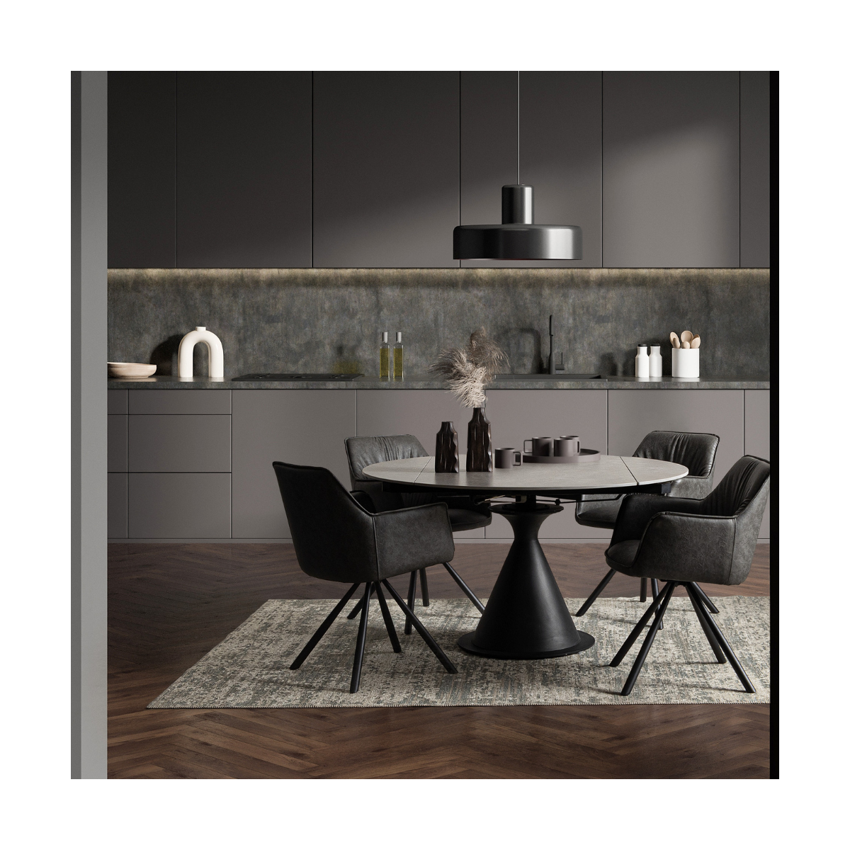 Perfetto per ambienti moderni e spazi contenuti, il tavolo JONNI unisce funzionalità e design in una forma rotonda e accogliente. Il suo piano in gres porcellanato effetto marmo grigio opaco dona raffinatezza all’ambiente, mentre la struttura in acciaio verniciato a polvere epossidica garantisce stabilità e resistenza nel tempo.