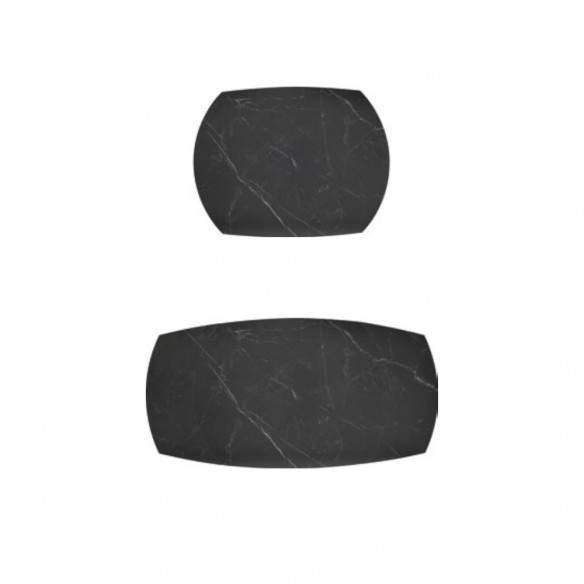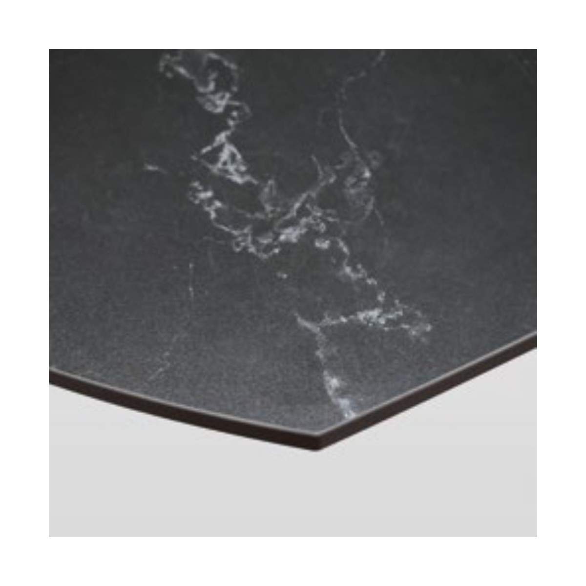 La base in metallo colore nero dona stabilità e carattere, mentre il piano opaco arrotondato in ceramica effetto marmo nero aggiunge eleganza e resistenza, ideale per l’uso quotidiano.