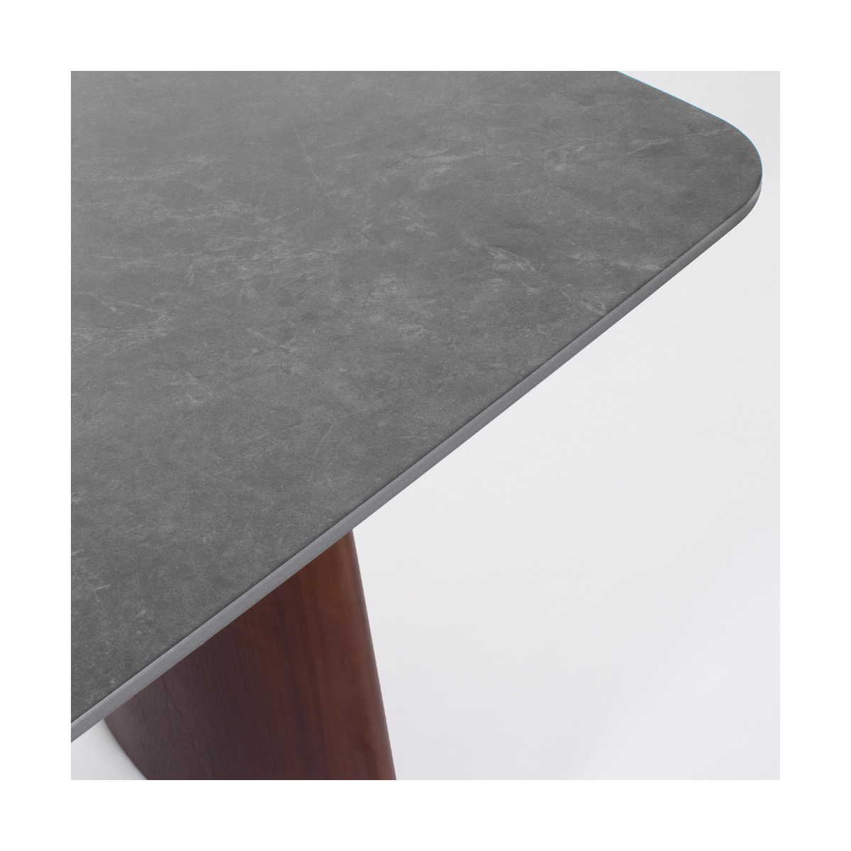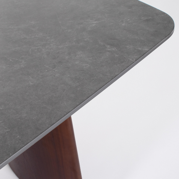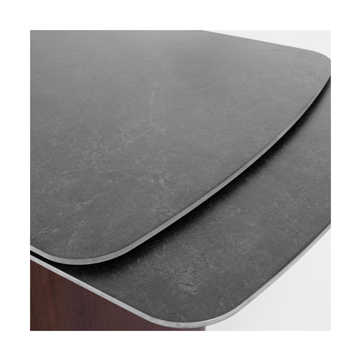 La struttura in MDF impiallacciato legno di noce, unita al supporto in acciaio verniciato a polvere epossidica, assicura solidità e un tocco di pregio artigianale. Le prolunghe indipendenti permettono di estendere il tavolo fino a 260 cm, rendendolo ideale per ospitare da 6 a 10 persone.
