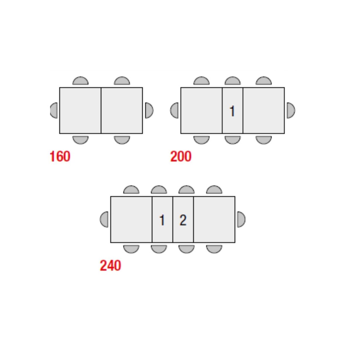 Grazie alle 2 allunghe da 40 cm, il tavolo si trasforma facilmente da una dimensione quotidiana a una superficie ampia e conviviale, ideale per ospitare famiglia e amici in ogni occasione.