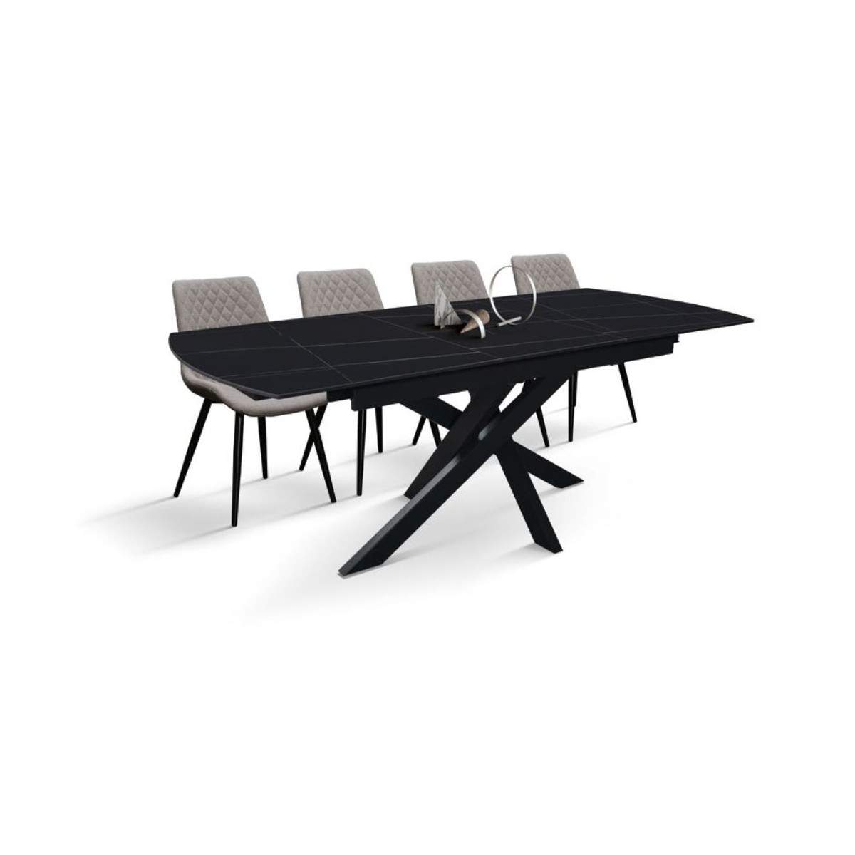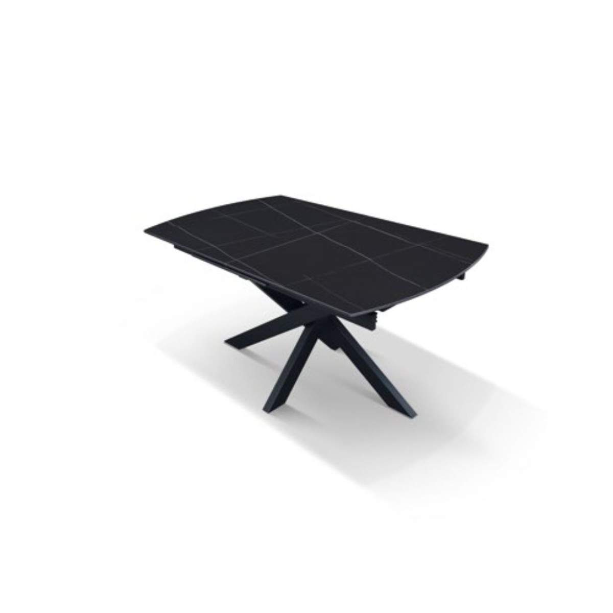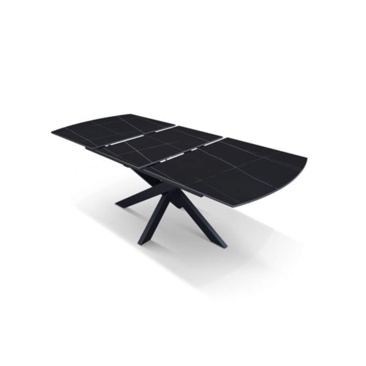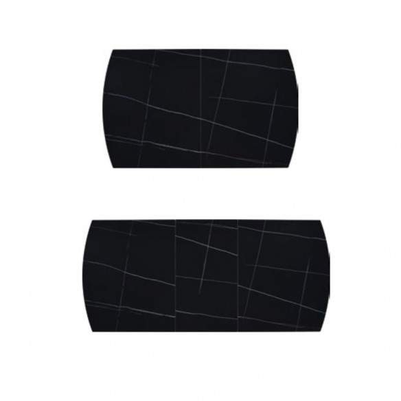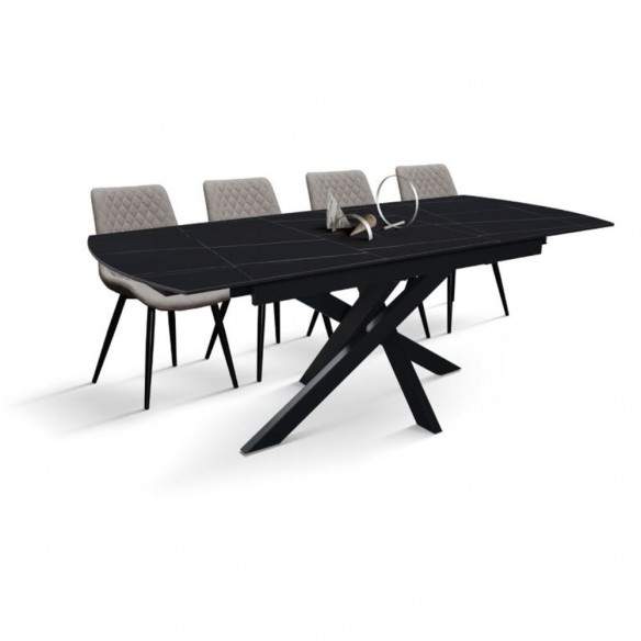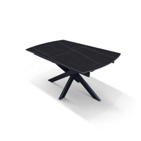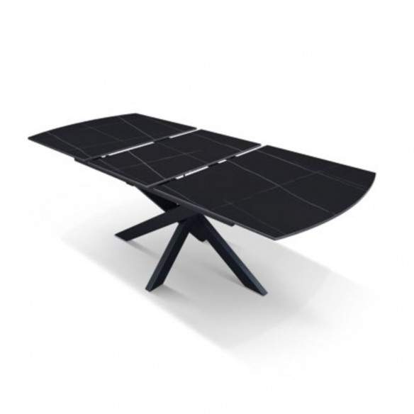 Tavolo allungabile PLUTONE con base in metallo colore nero, piano opaco in ceramica finitura marmo nero con 1 allunga da 50 cm