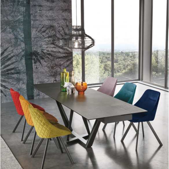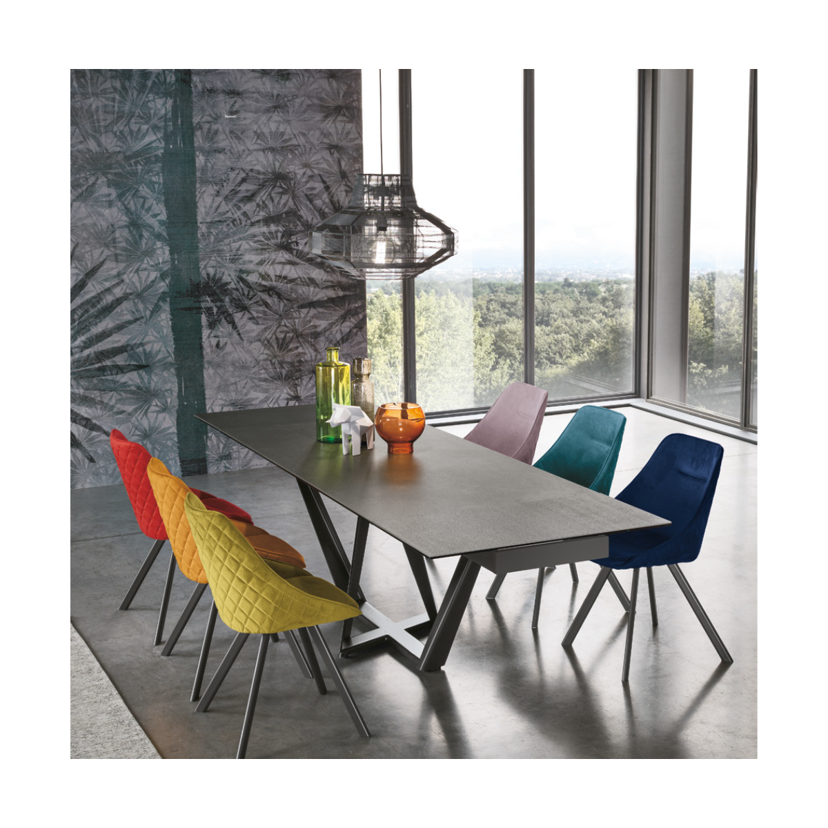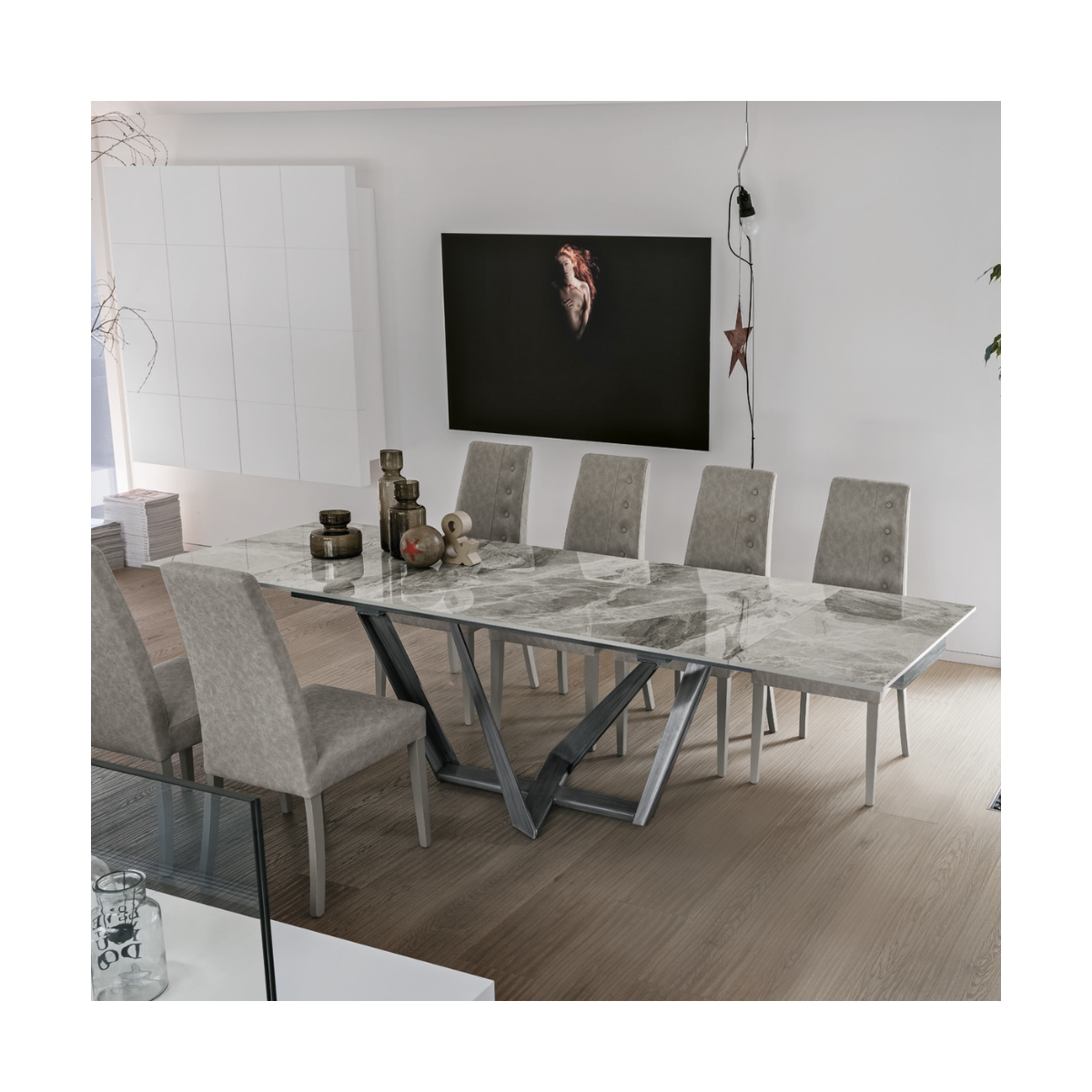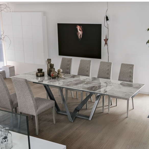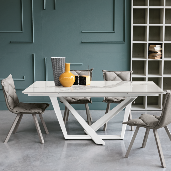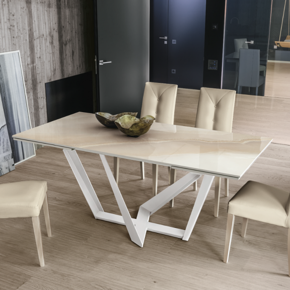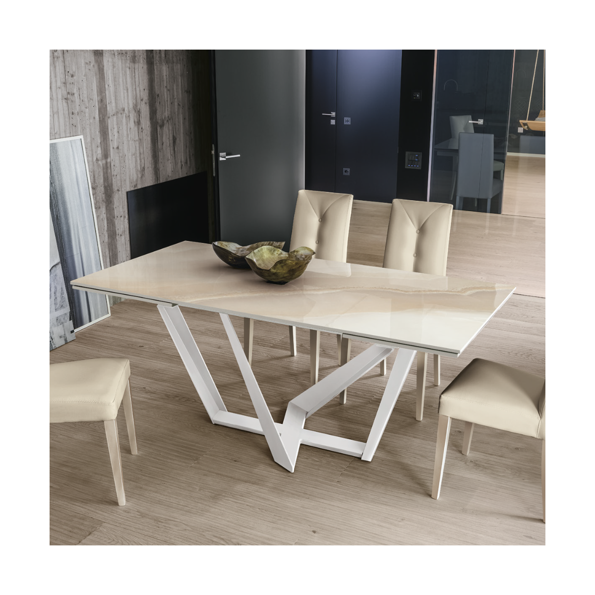 Tavolo allungabile PRIAMO con struttura in metallo e piano in gres opaco o lucido disponibile in due misure differenti.
