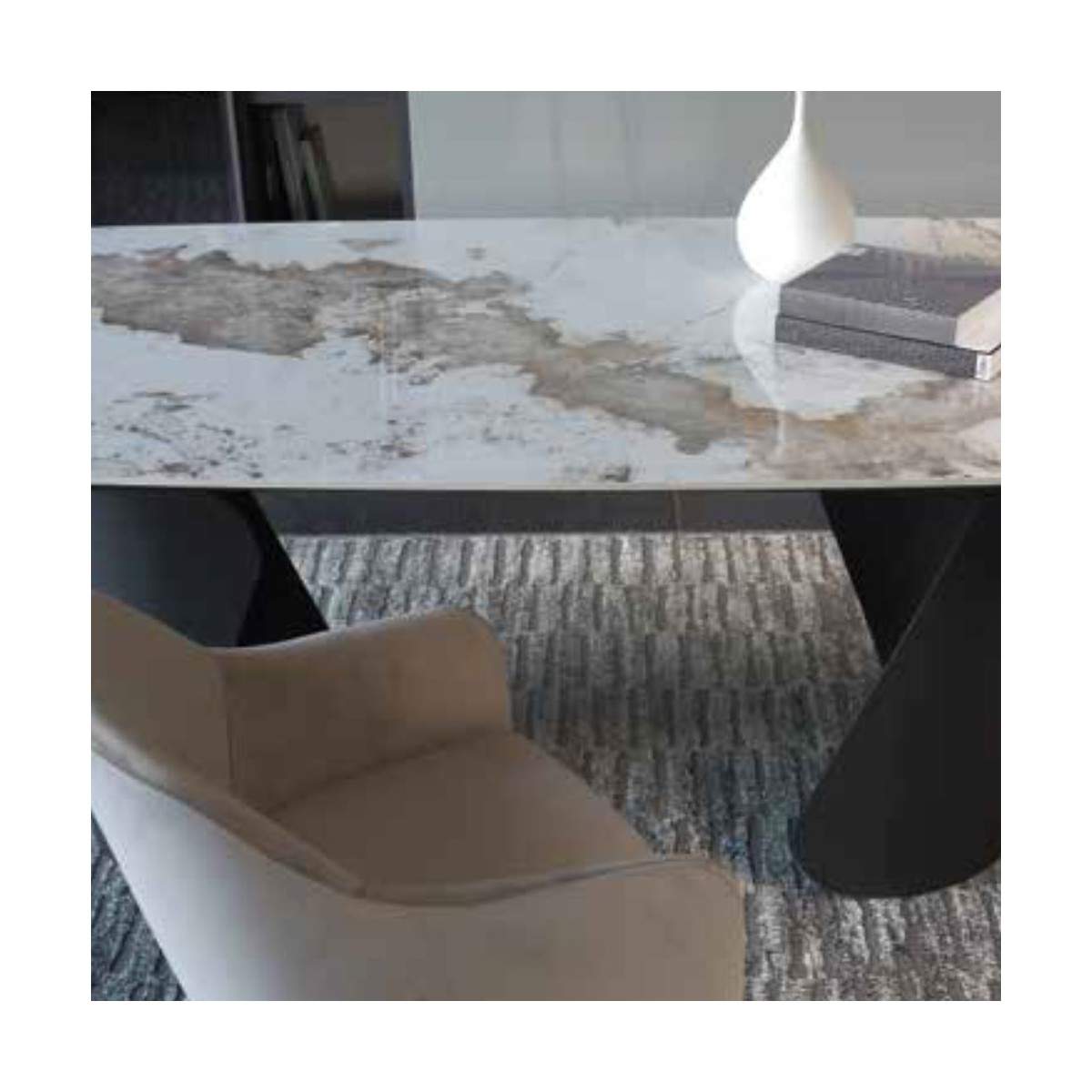Tavolo Allungabile ROYAL con struttura in metallo verniciato e piano sintered stone.