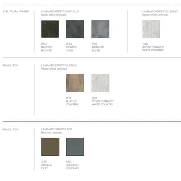 La struttura, solida e durevole, è disponibile in laminato con effetto metallo o legno, garantendo un aspetto moderno o più caldo a seconda delle preferenze. Il piano, anch’esso realizzato in laminato di alta qualità, può essere scelto con un elegante effetto legno o un deciso effetto metallo, permettendo una personalizzazione completa in base al contesto abitativo. Le molteplici opzioni di colorazione disponibili ampliano ulteriormente le possibilità di adattamento del tavolo agli ambienti più diversi.