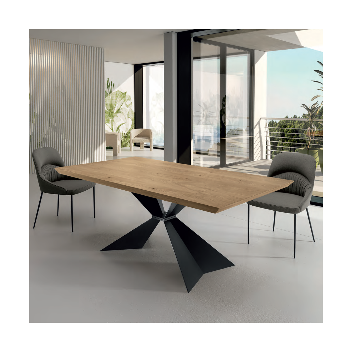Il piano in rovere impiallacciato, disponibile in due finiture naturali, offre una superficie ampia e accogliente, perfetta per ogni tipo di occasione. Le venature del legno sono messe in risalto, creando un contrasto armonioso con la struttura in metallo. La versatilità del tavolo allungabile STARK lo rende ideale per chi ha bisogno di un tavolo che si adatti ai vari momenti della giornata, dall'intimità di una cena in famiglia a un pranzo con amici.